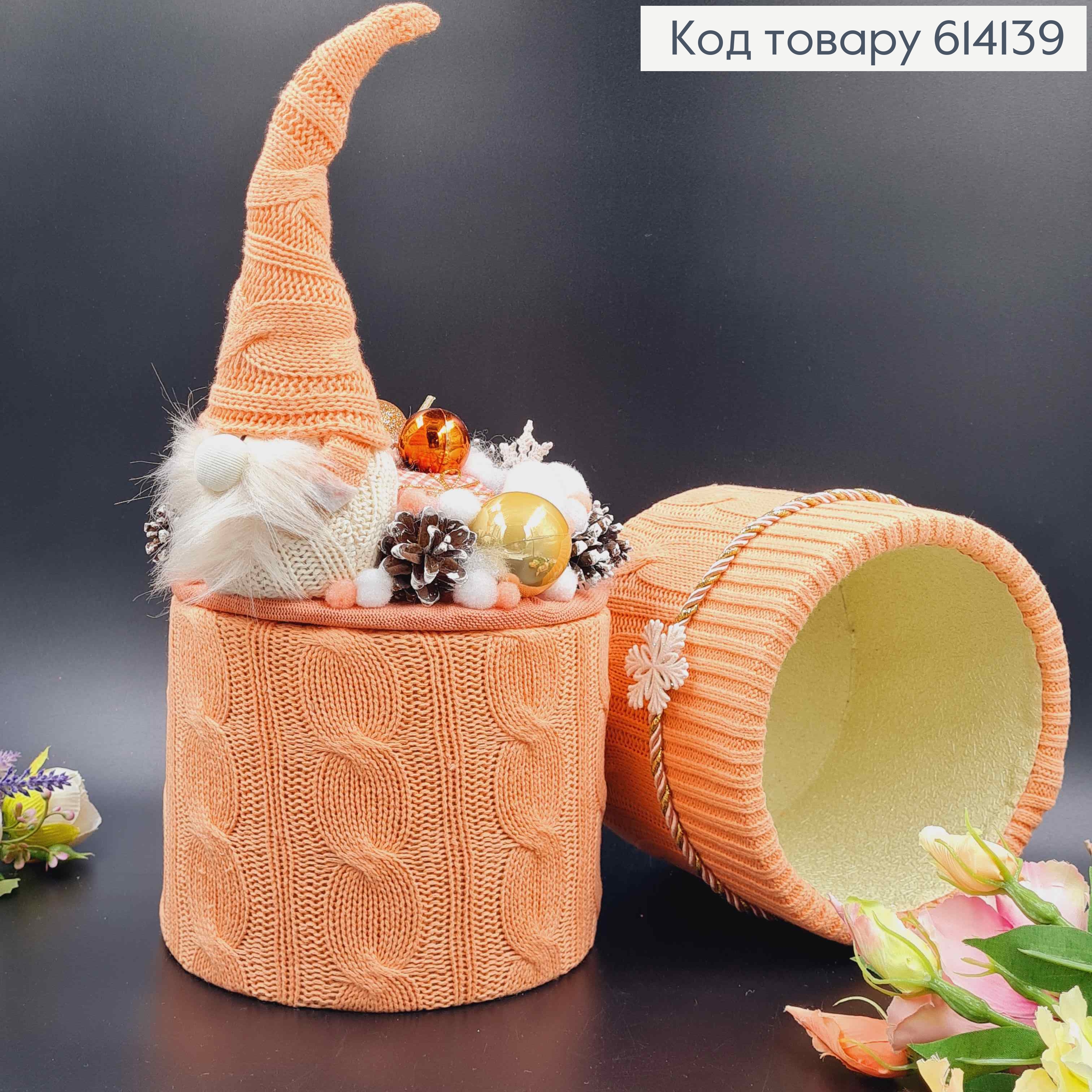 Дерев"яна коробка17*17см ПЕРСИК, з декоративною кришкою з гномиком 20см, ручна робота, УКраїна