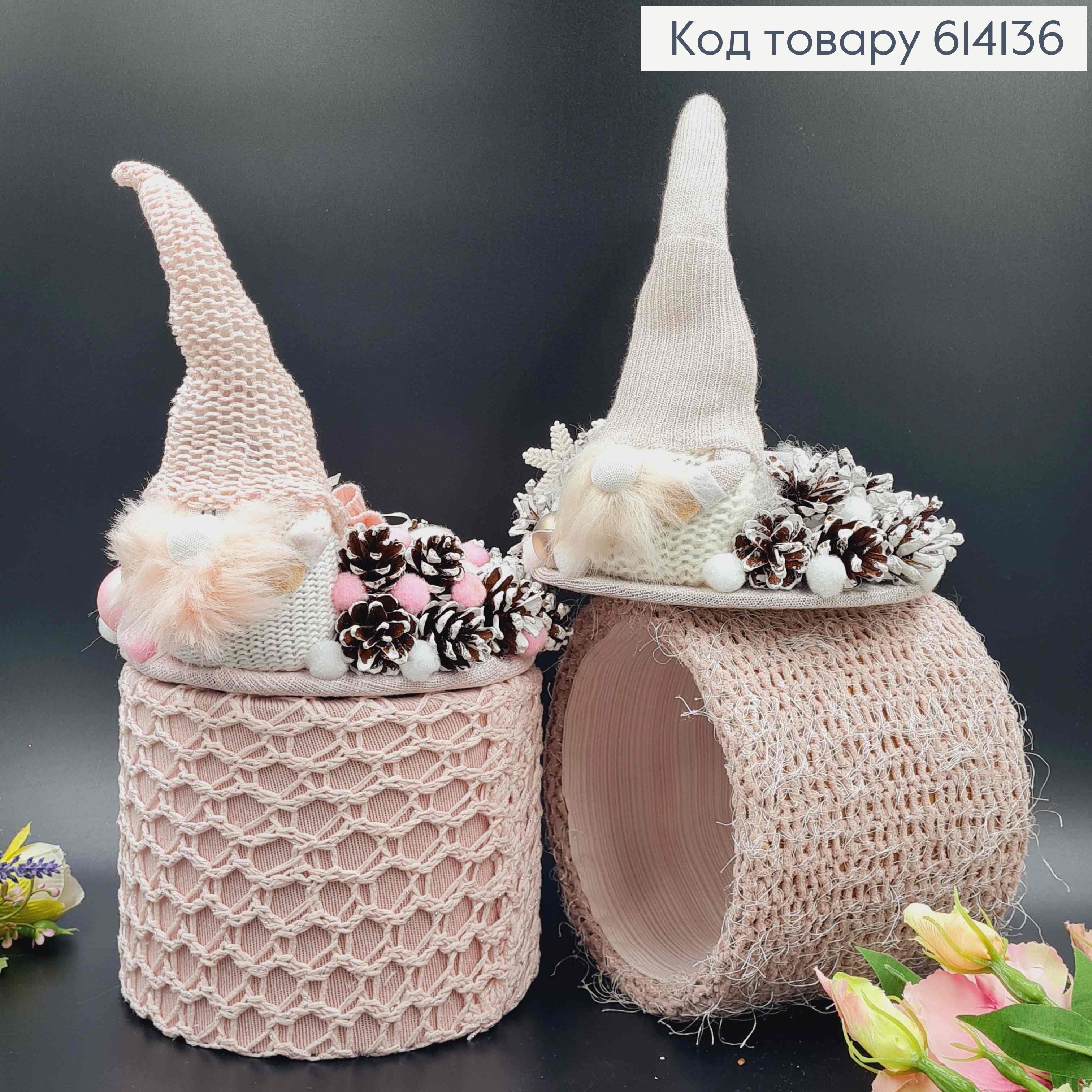 Дерев"яна коробка17*17см СВІТЛО-РОЖЕВА, з декоративн. кришкою з гномиком 20см, ручна робота, УКраїна