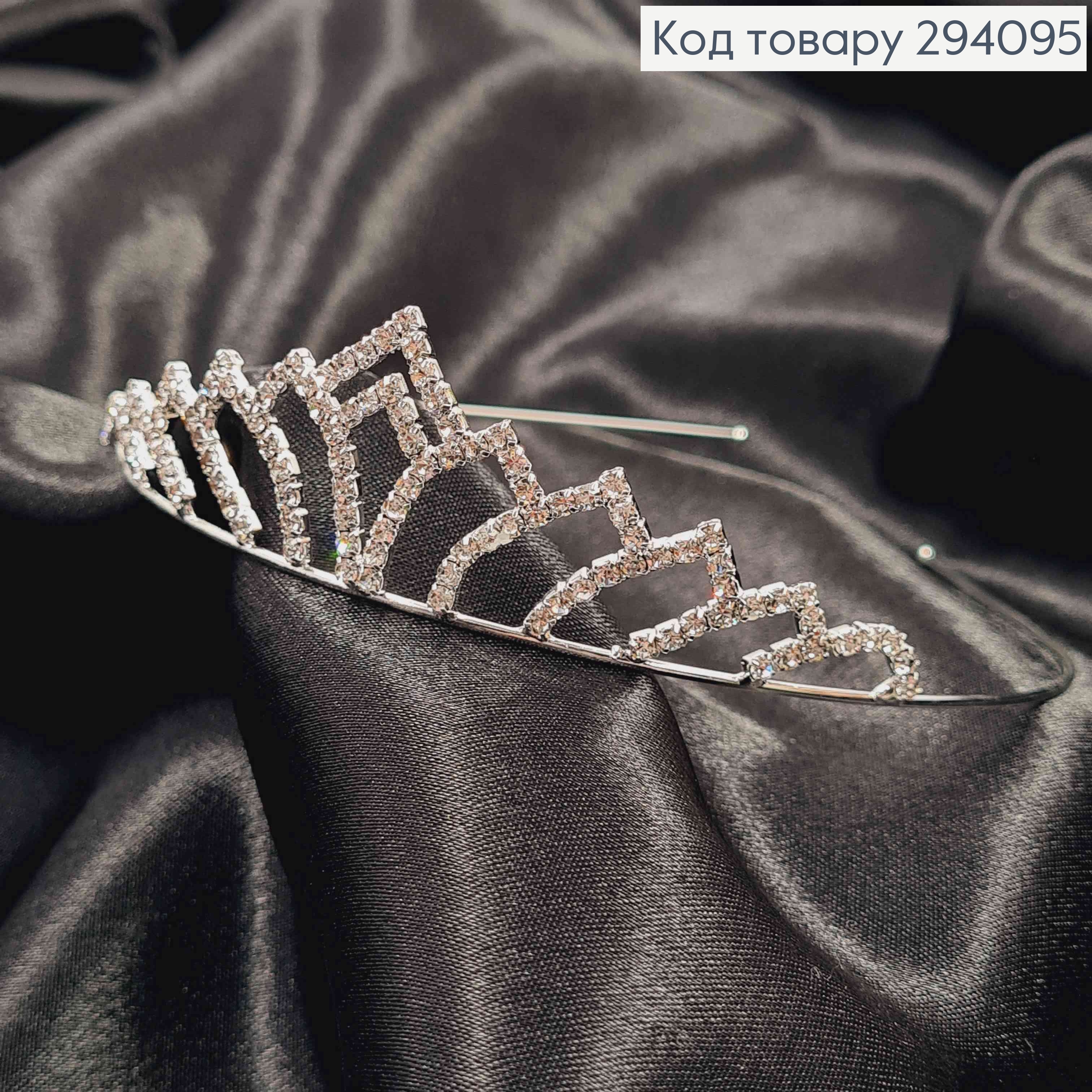 Тіара під срібло, "Флоренцо" з Блискучими камінцями, 4см найвища точка 294163 фото