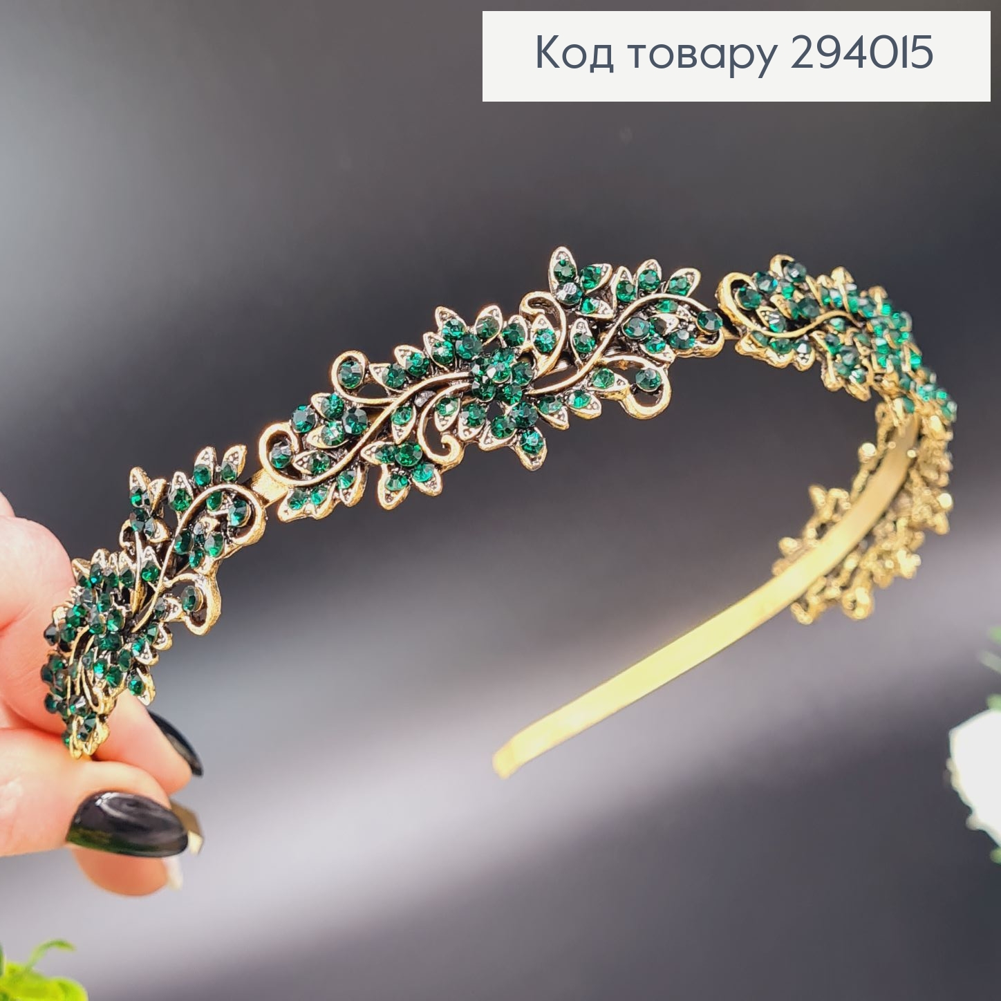 Діадема "Велична" під золото, з Зеленими блискучими камінцями, 6см найвища точка 294164 фото