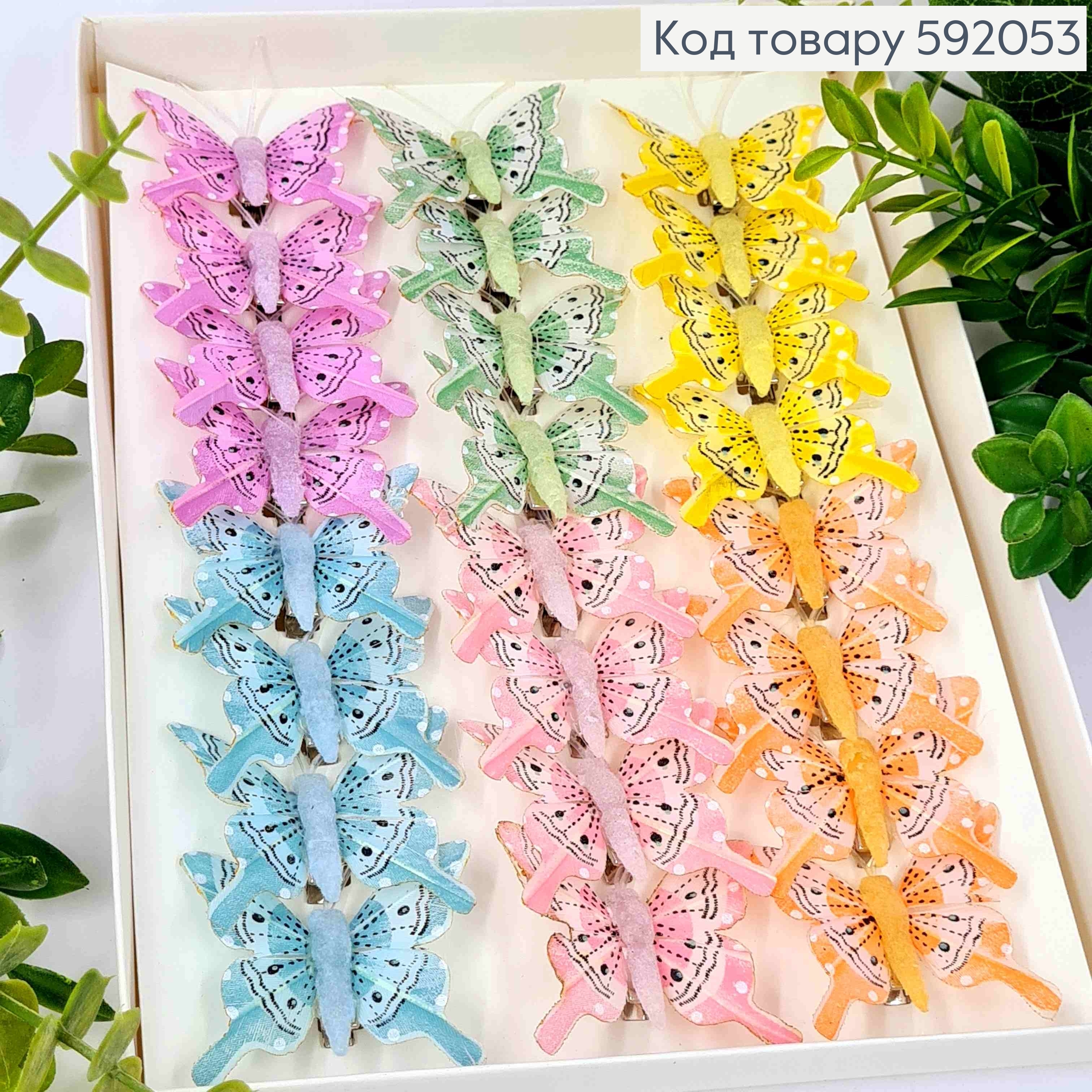 Флористична заколка, Метелик пастельних кольорів з Блиском, 4см, в асортименті 592055 фото