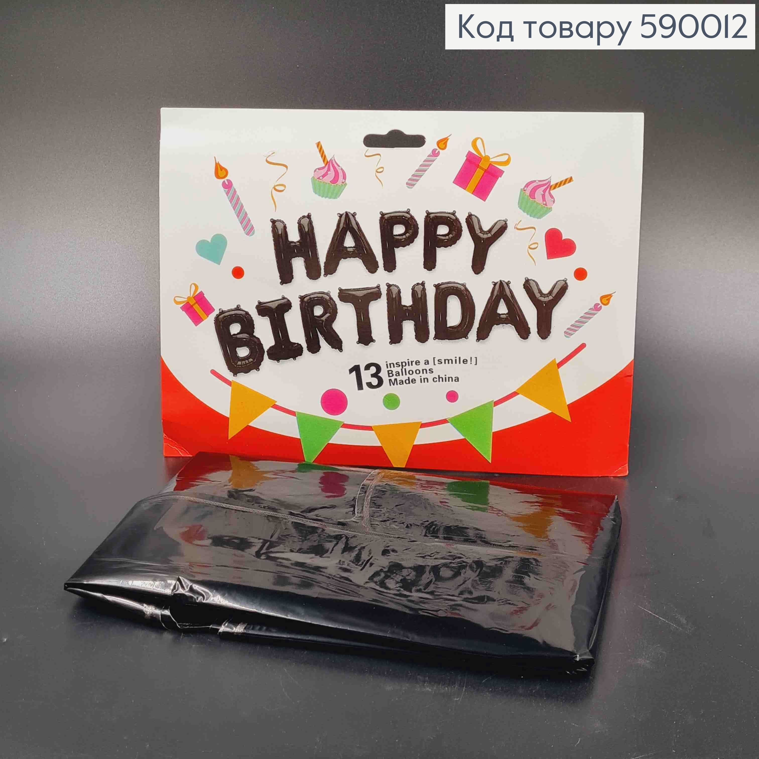 Фольгована гірлянда Надувна, ЧОРНА, "HAPPY BIRTHDAY" (13букв/уп)