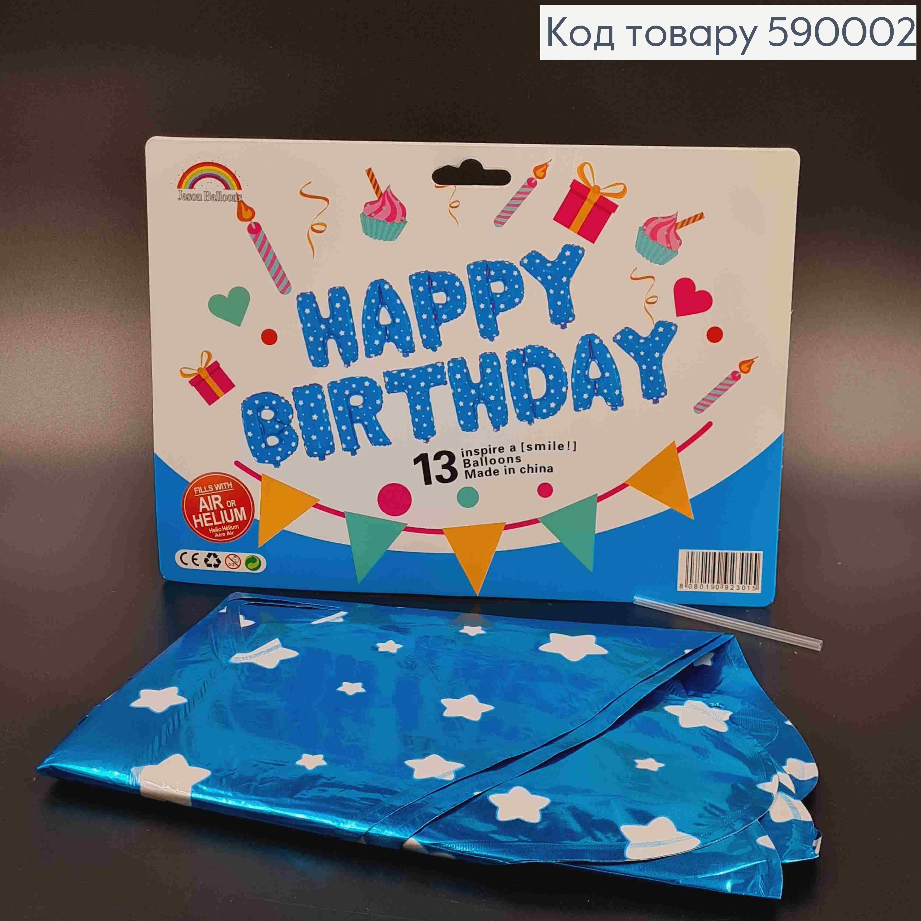 Фольгована гірлянда, Надувна ГОЛУБА В ЗІРОЧКИ, "HAPPY BIRTHDAY" (13букв/уп)