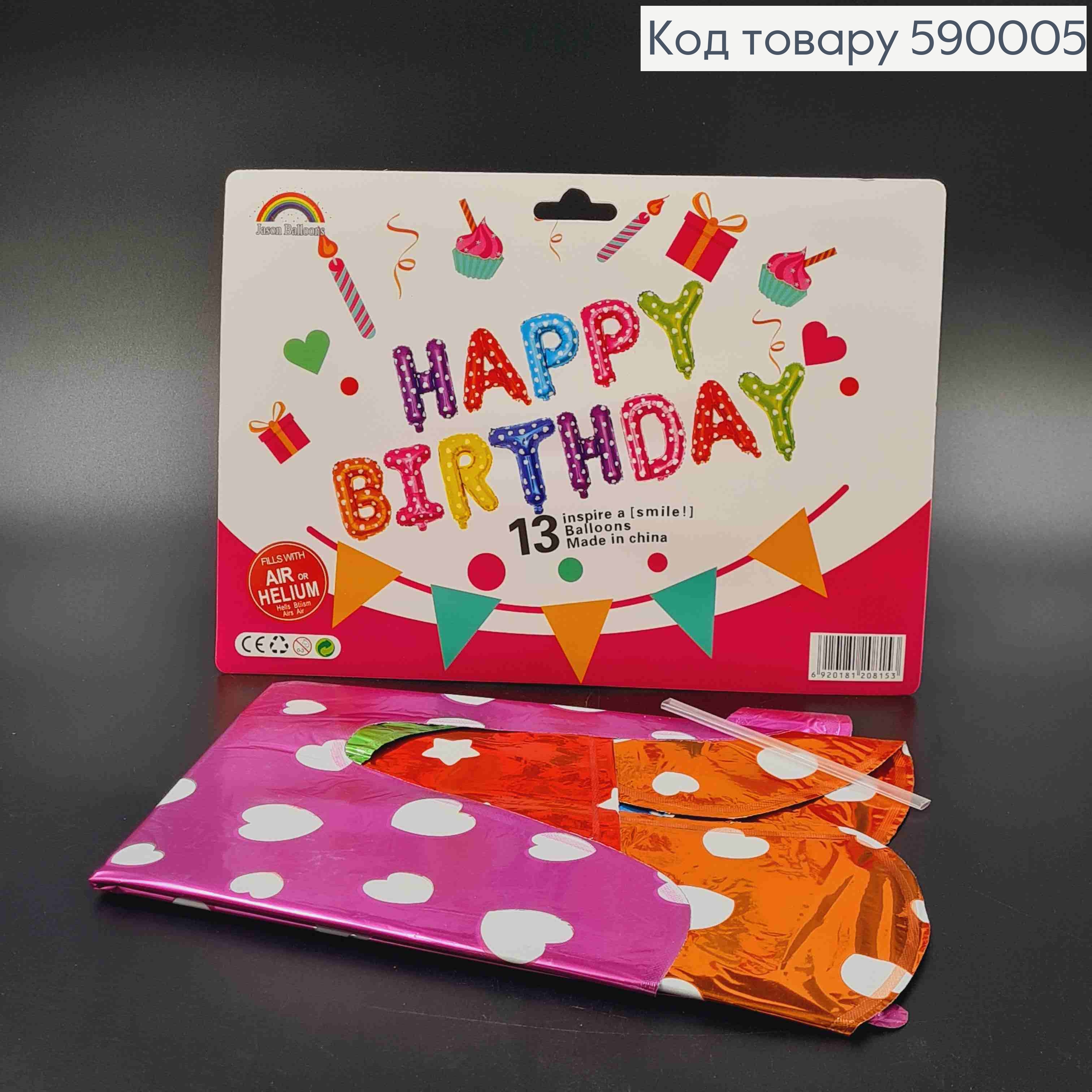 Фольгована гірлянда Надувна, КОЛЬОРОВА, "HAPPY BIRTHDAY" (13букв/уп)