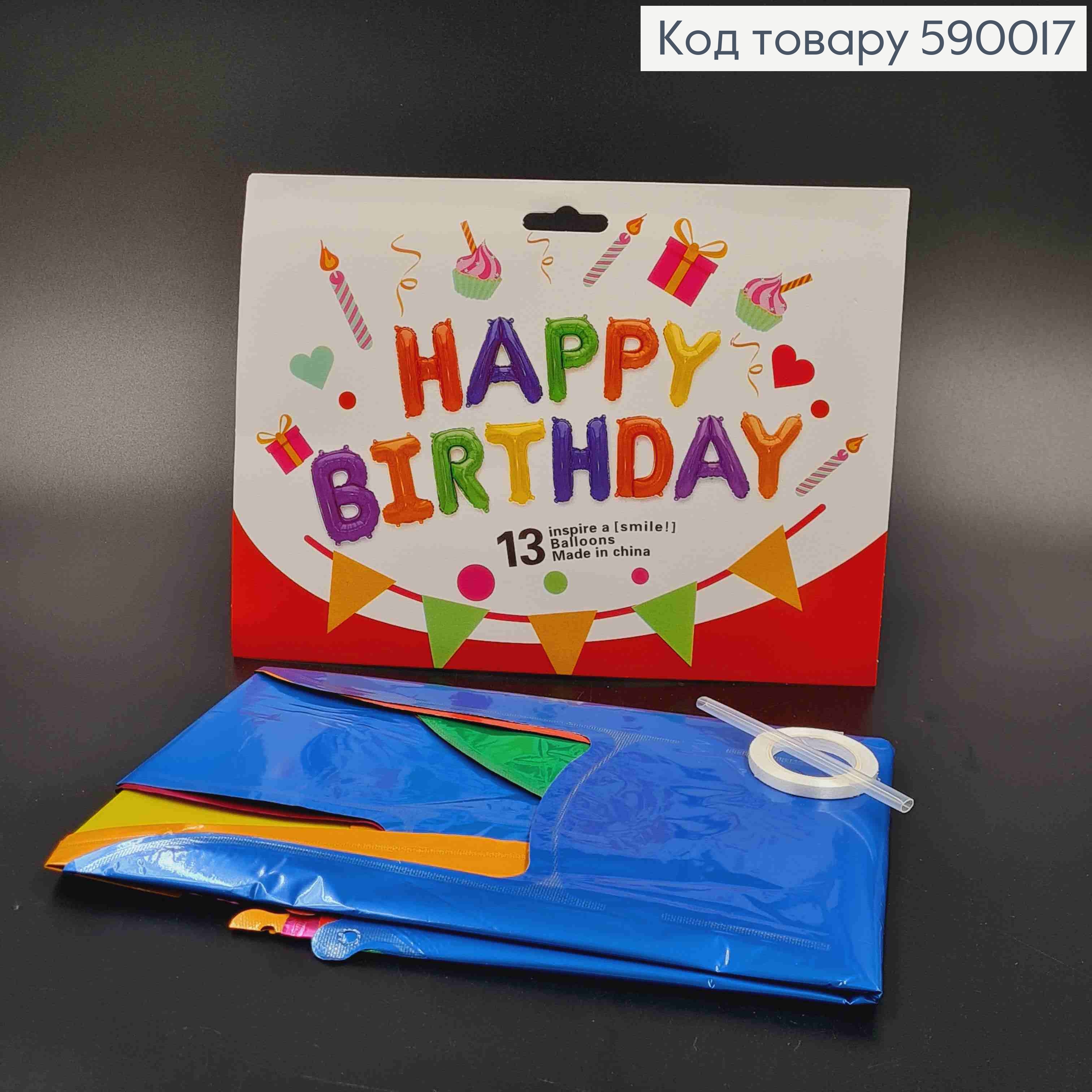 Фольгована гірлянда Надувна, КОЛЬОРОВА, "HAPPY BIRTHDAY" (13букв/уп)
