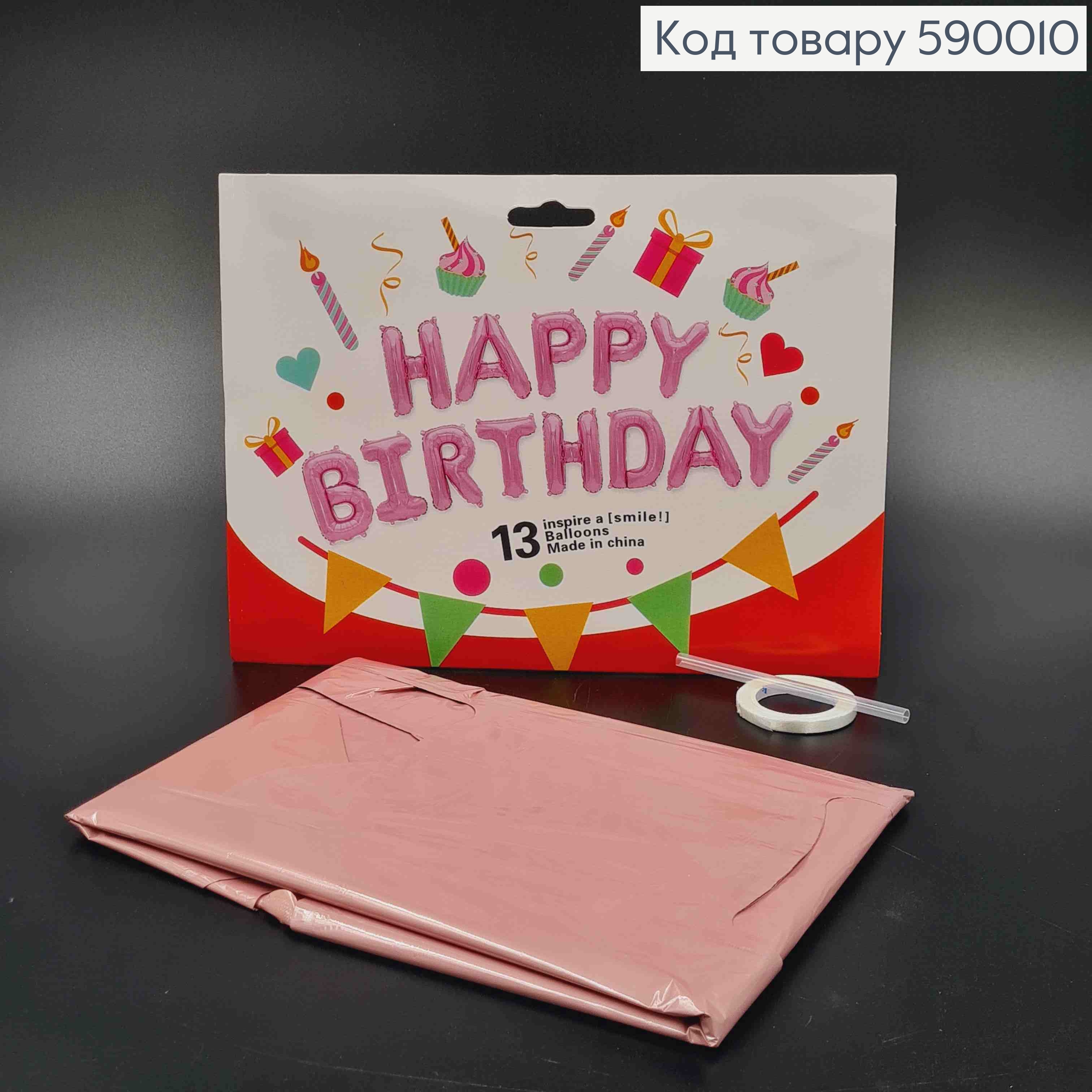 Фольгована гірлянда Надувна, РОЖЕВА, "HAPPY BIRTHDAY" (13букв/уп)
