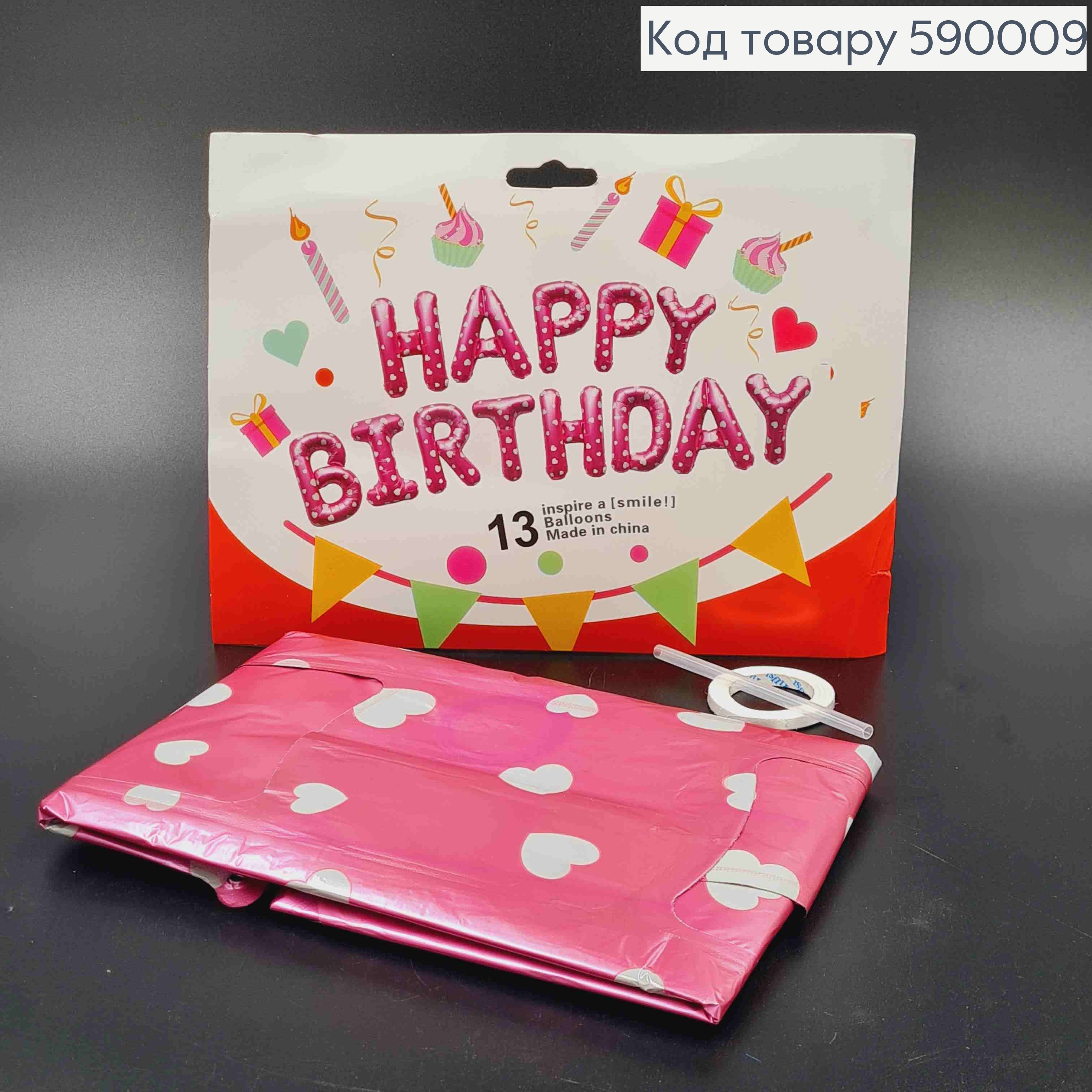 Фольгована гірлянда Надувна, РОЖЕВА В СЕРДЕЧКА, "HAPPY BIRTHDAY" (13букв/уп)