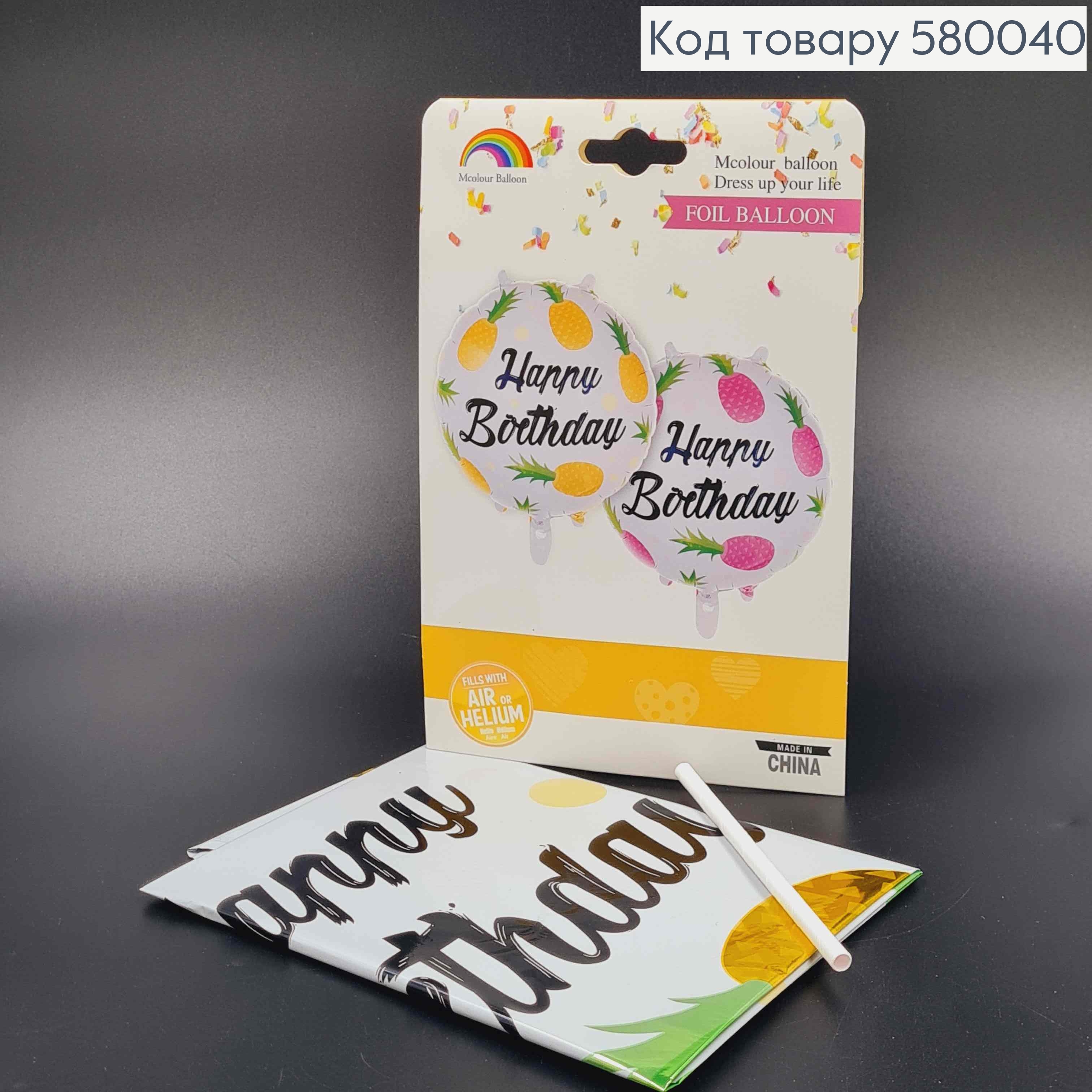 Фольгована куля із Жовтими ананасами "Happy Birthday", 45см