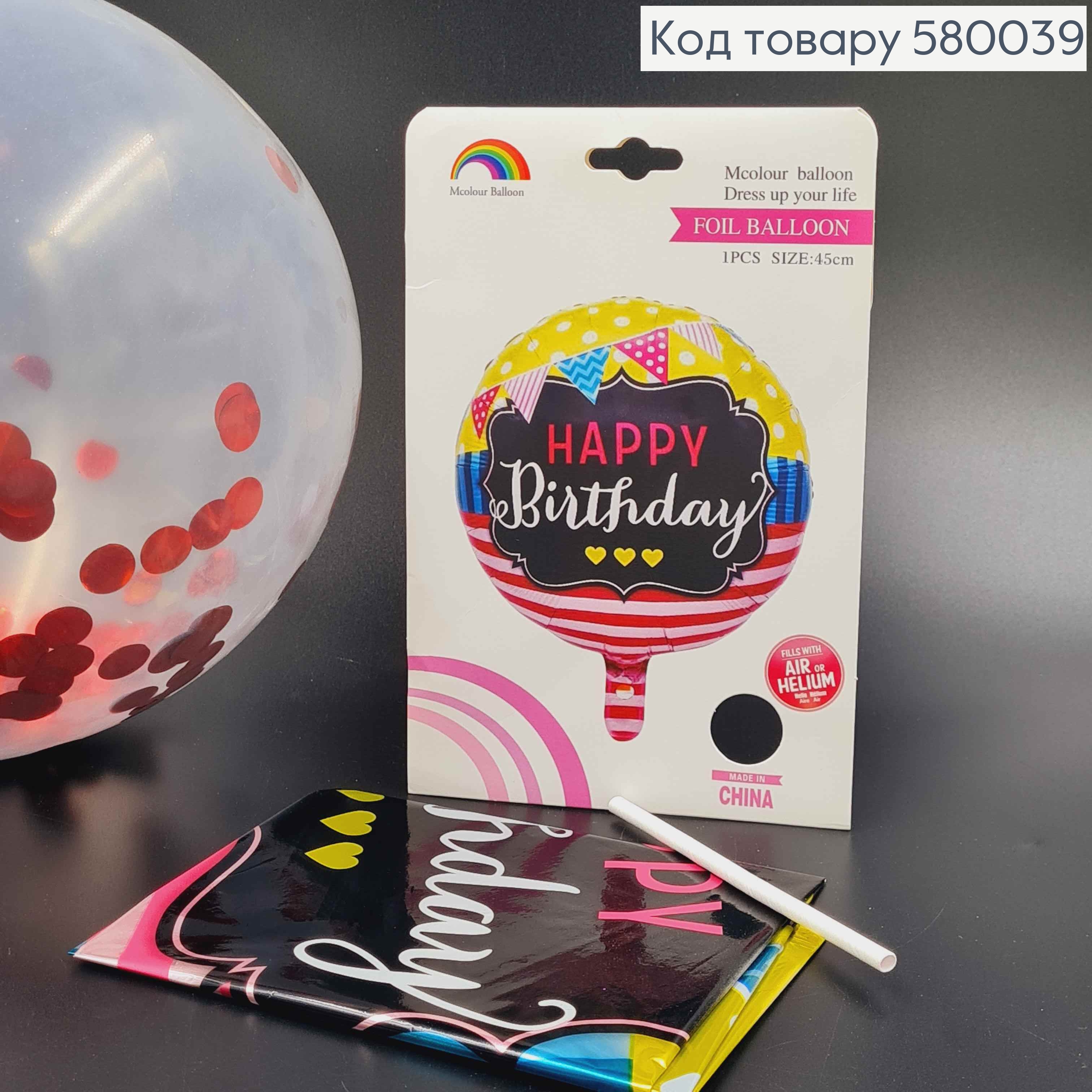 Набір фольгованих куль, "Happy Birthday", Келих-1шт/36,6", Зірки-2шт/18", Круглі-2шт/18" 578184 фото