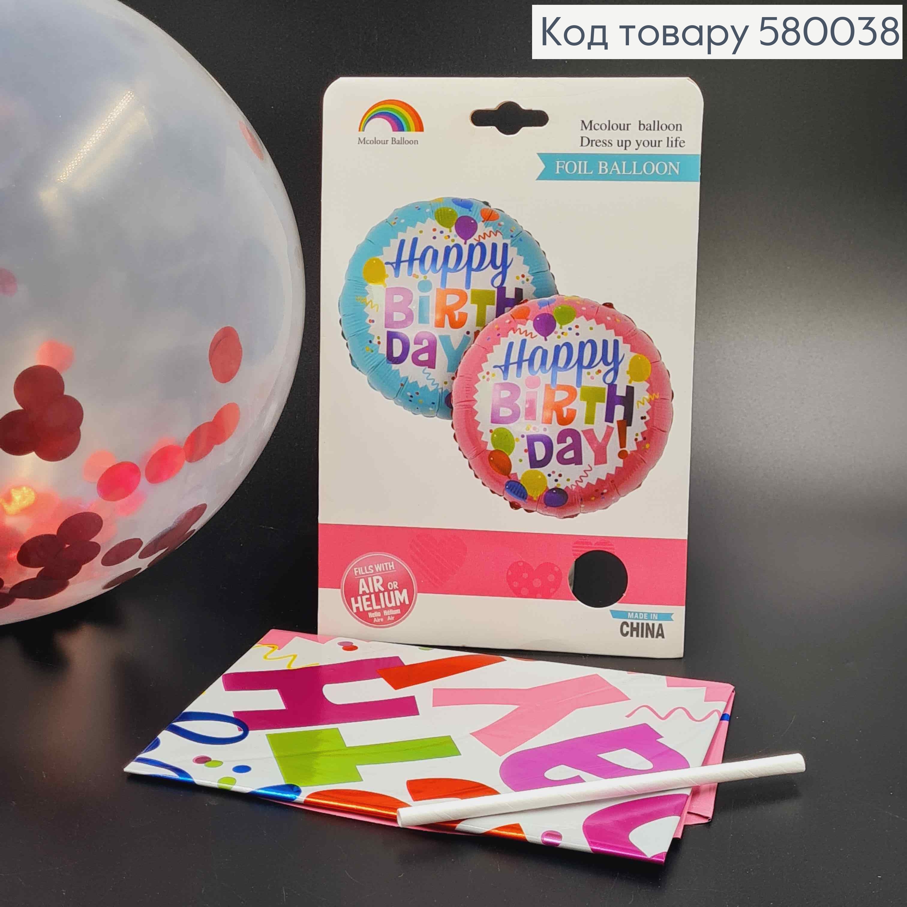 Фольгована куля рожева "Happy Birthday", 45см, в асорт.