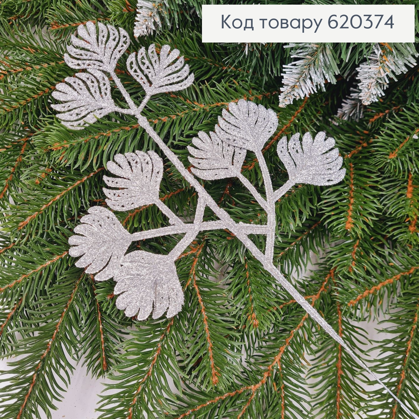 Гілочка декоративна БІЛОГО БЛИСК кольору,  на металевому стержні, вис 67см, новорічний декор 620750 фото
