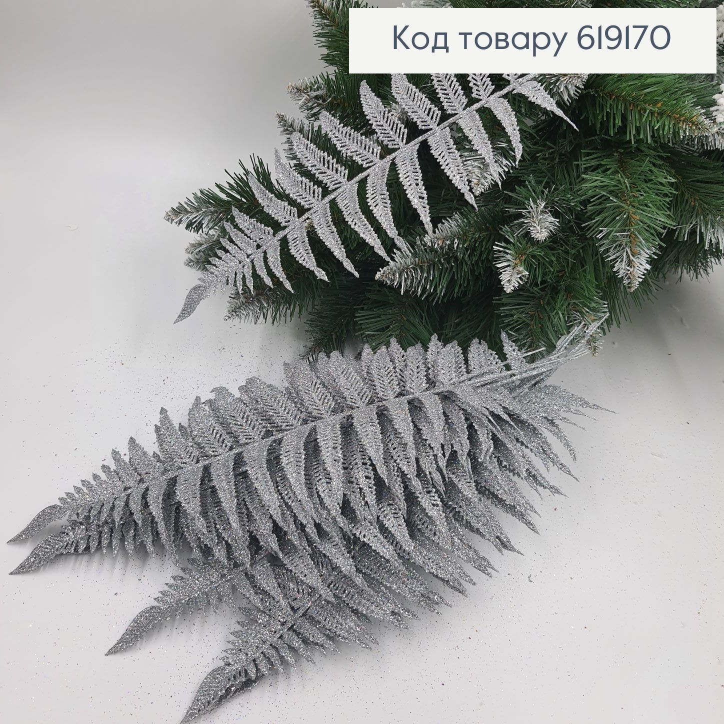 Гілка Папороті СРІБЛО глітер 10шт/уп, 39*16см, Україна