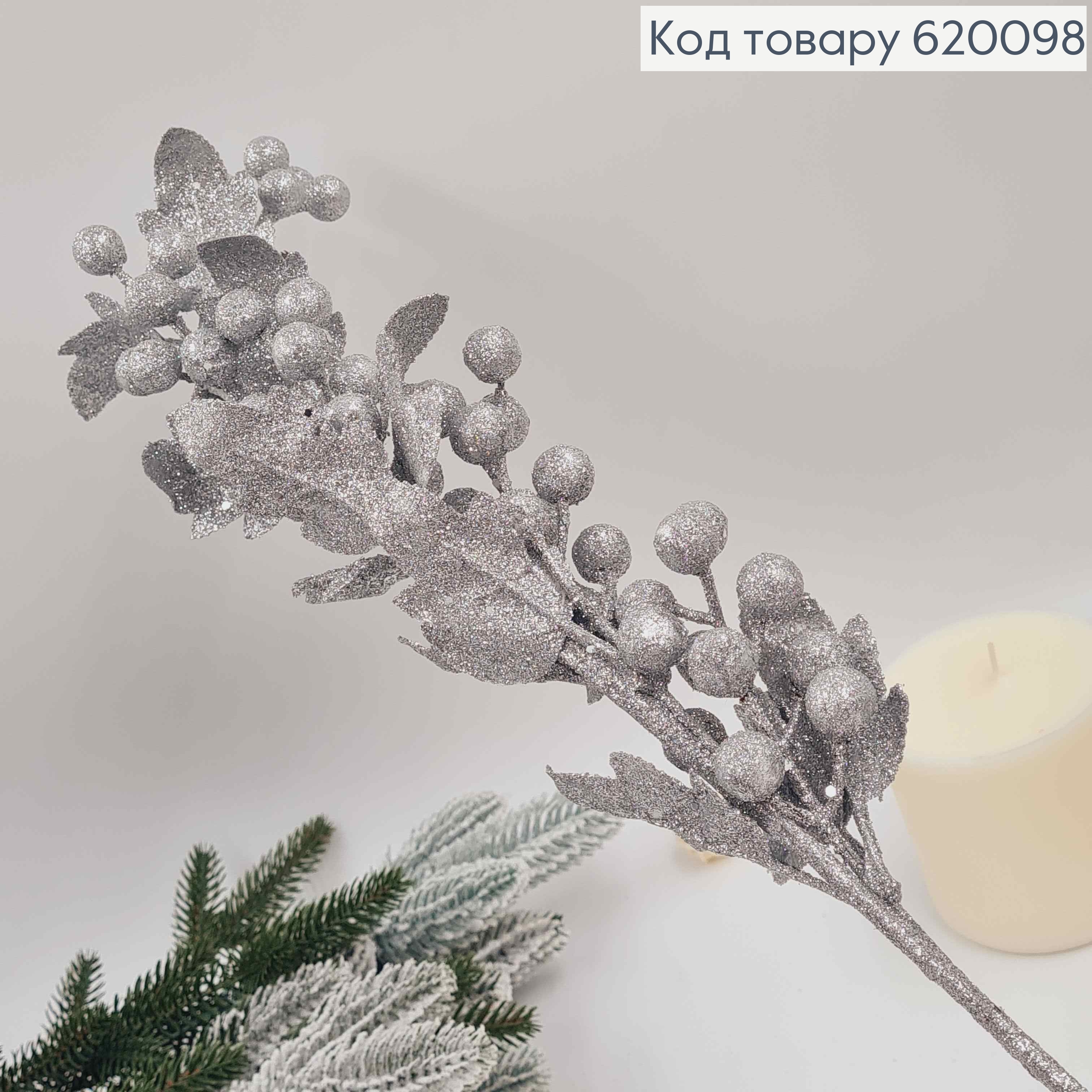 Ягідки КАЛИНИ, СРІБНОГО кольору(20шт) на металевому дротику , 1,5см+6,5см 620762 фото