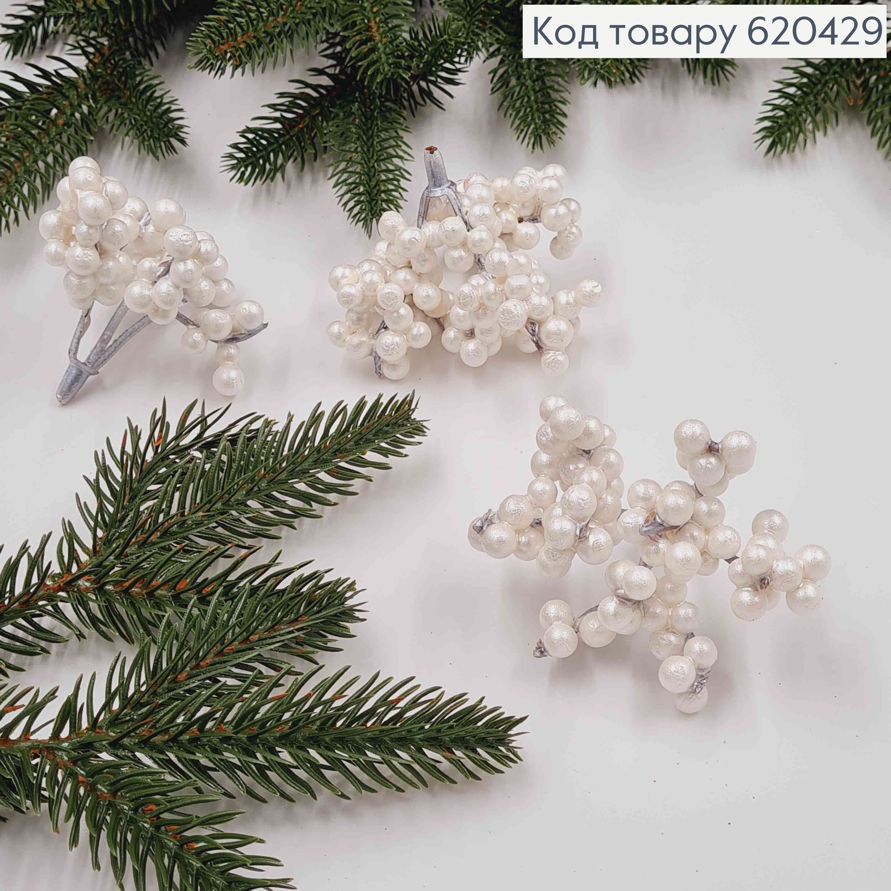 Пучок Ягідок (10шт/пучок) ПЕРЛАМУТРОВОГО кольору, на металевому стержні, довжина 16см 285146 фото
