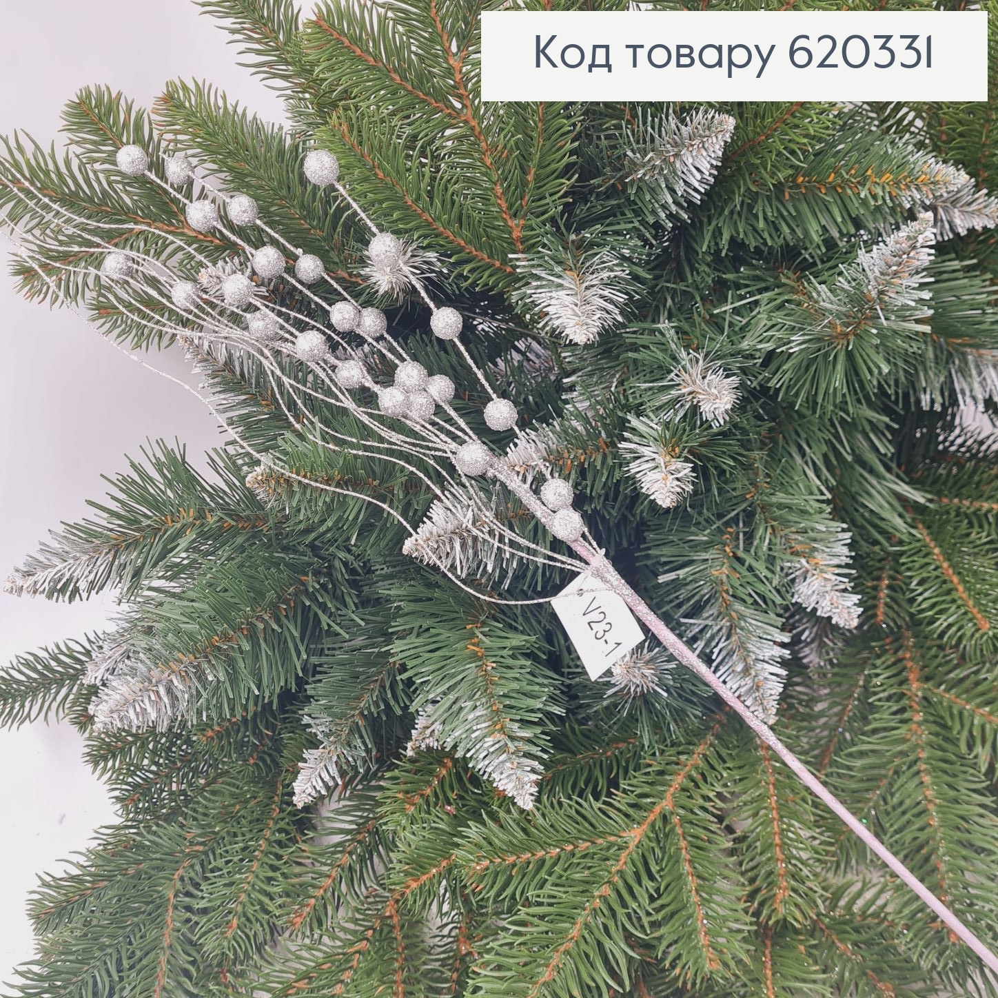 Ягідки КАЛИНИ, СРІБНОГО кольору(20шт) на металевому дротику , 1,5см+6,5см 620762 фото