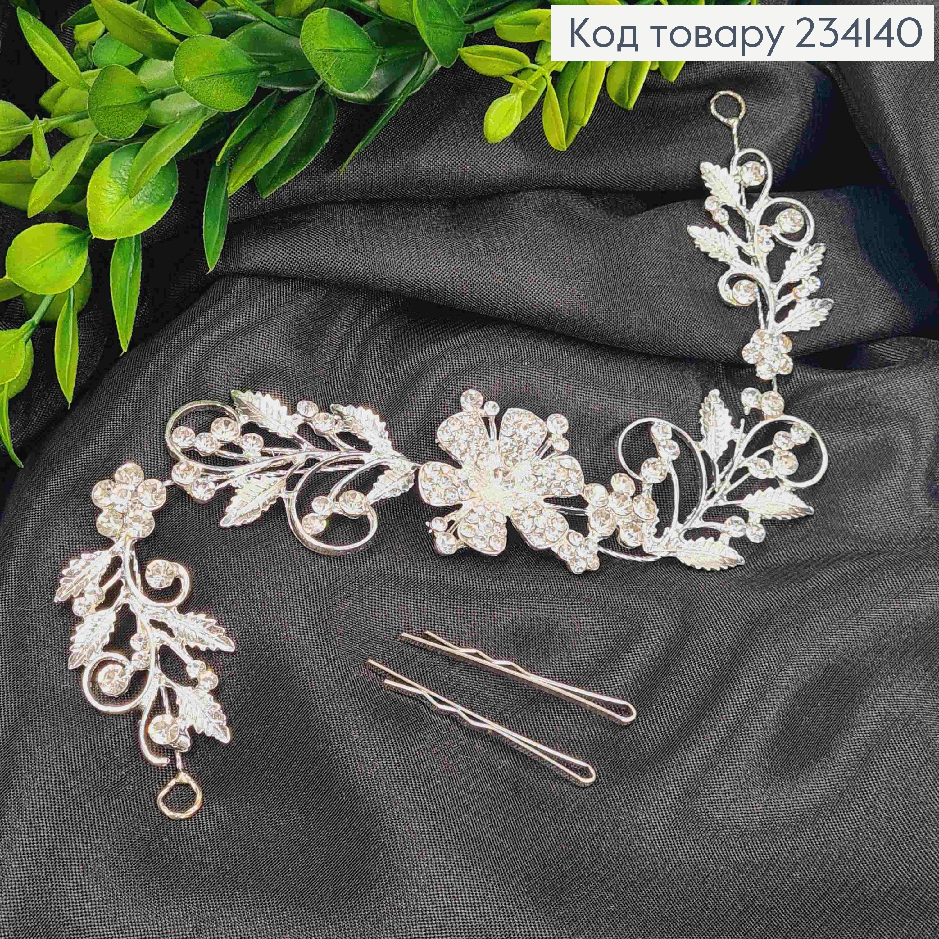 Гілочка у волосся, "Квіточки" з Бусинками та Стеклярусом, 30см, Срібного кольору 234180 фото