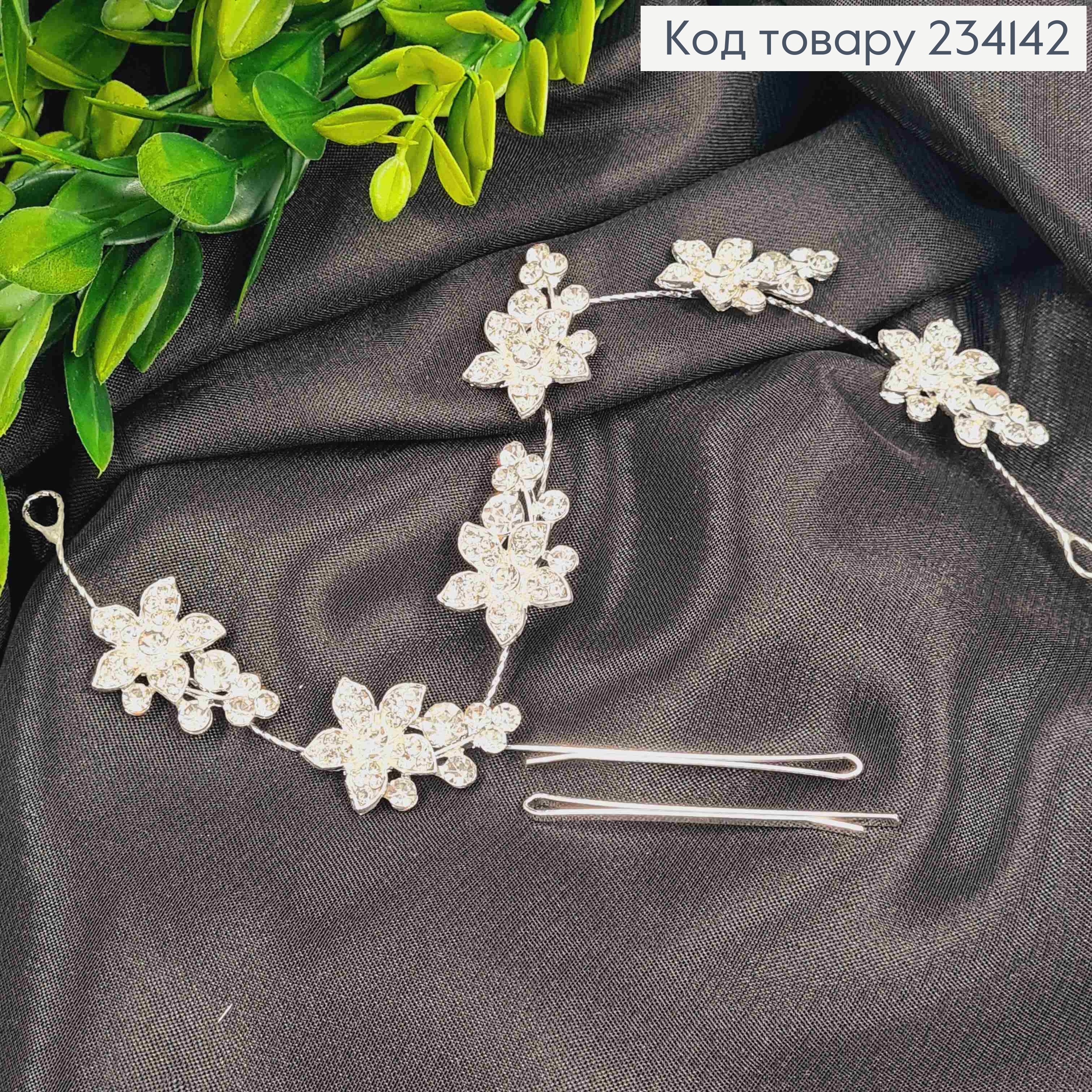 Гілочка у волосся, "Квіточки" з Бусинками та Стеклярусом, 30см, Срібного кольору 234180 фото