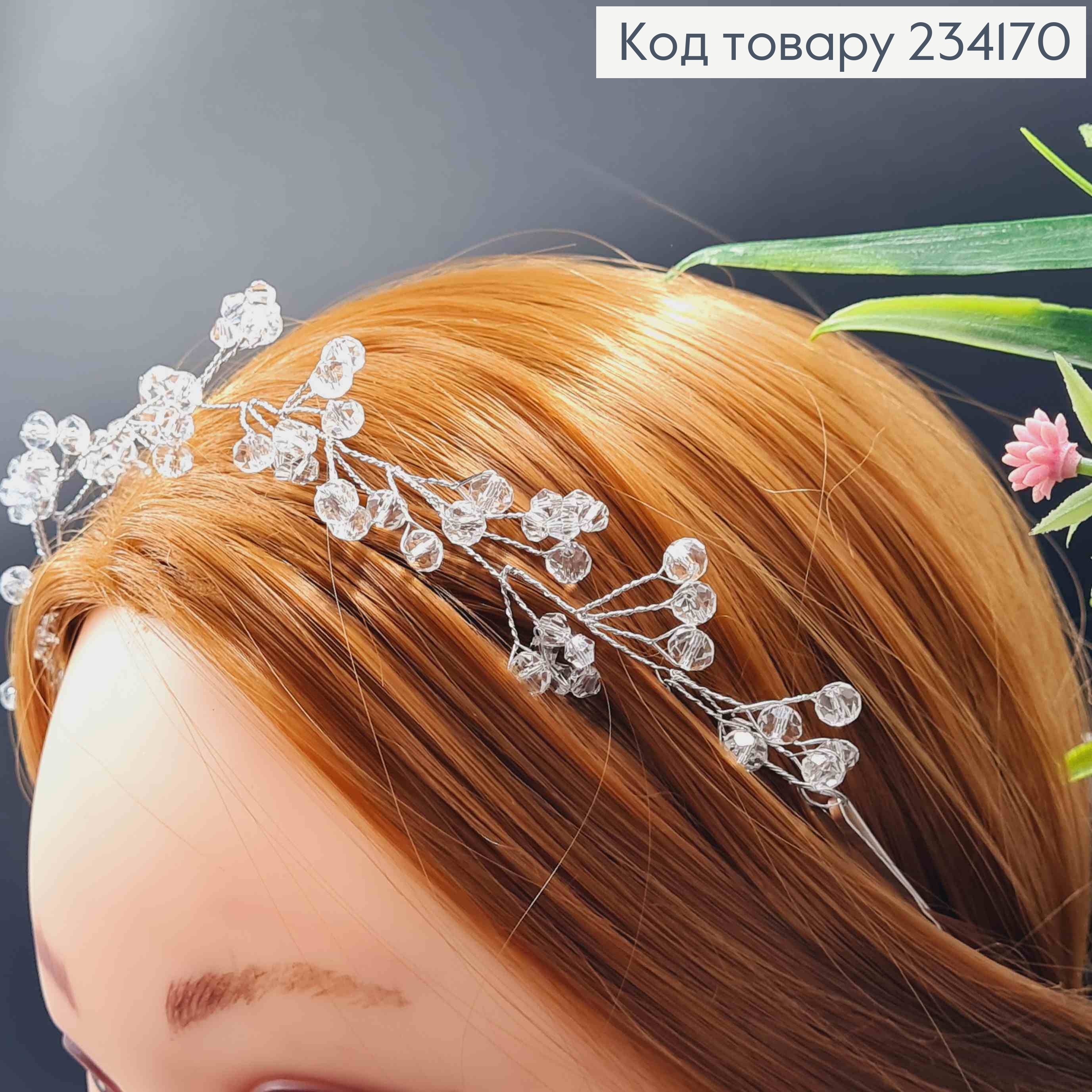 Гілочка у волосся, з Перламутровими та Прозорими Бусинками, 30см, Срібного кольору 234181 фото