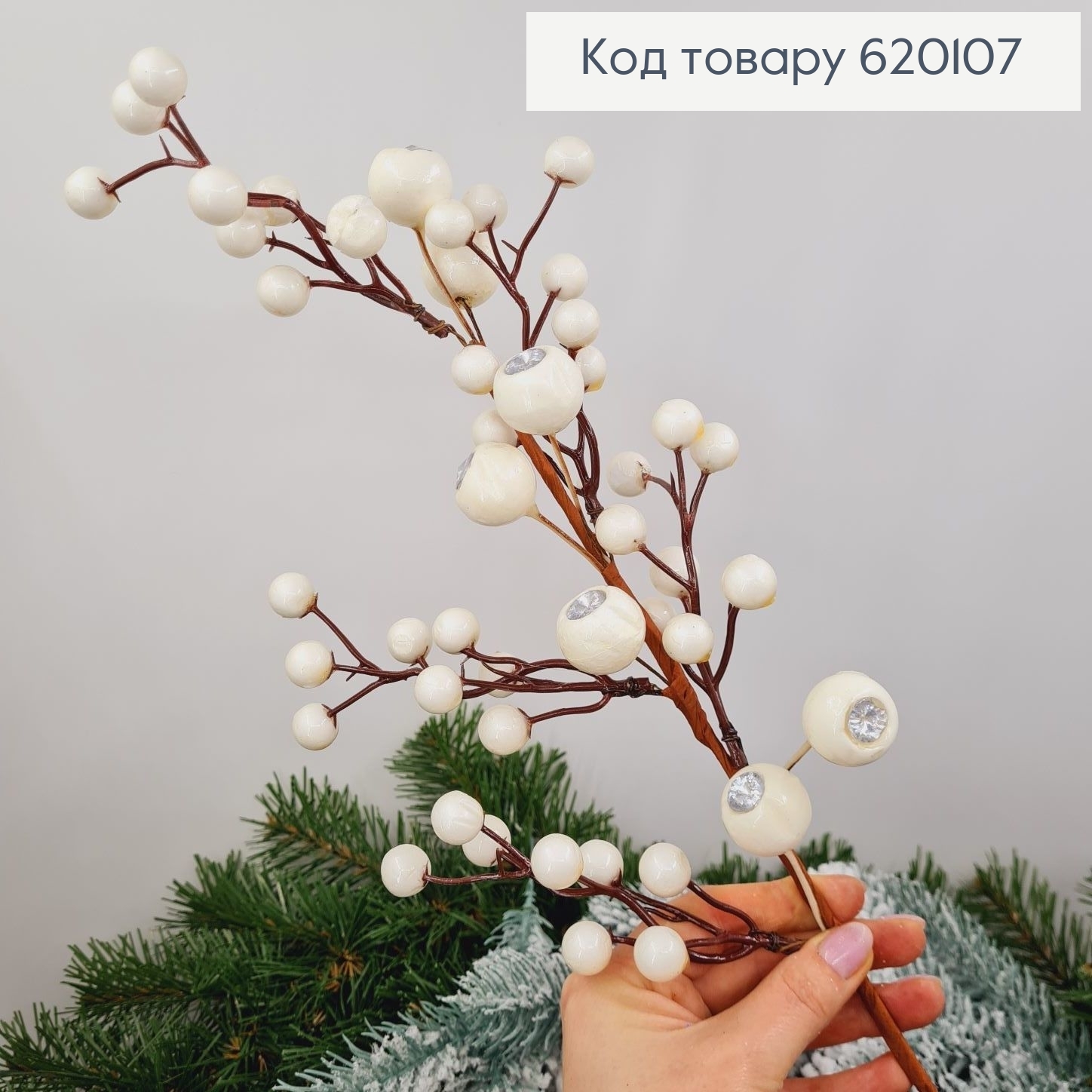 Ягідки КАЛИНИ, МОЛОЧНОГО кольору(20шт) на металевому дротику , 1,5см+6,5см 620763 фото