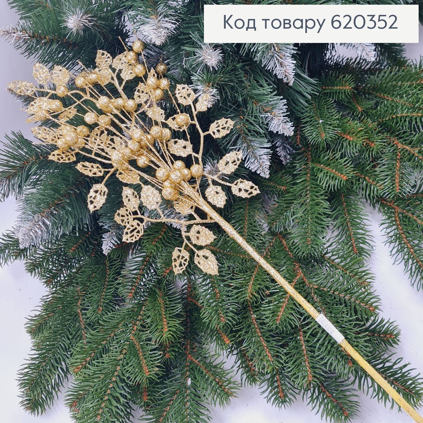 Гілочка ЗОЛОТО з кульками і листочками, 52см