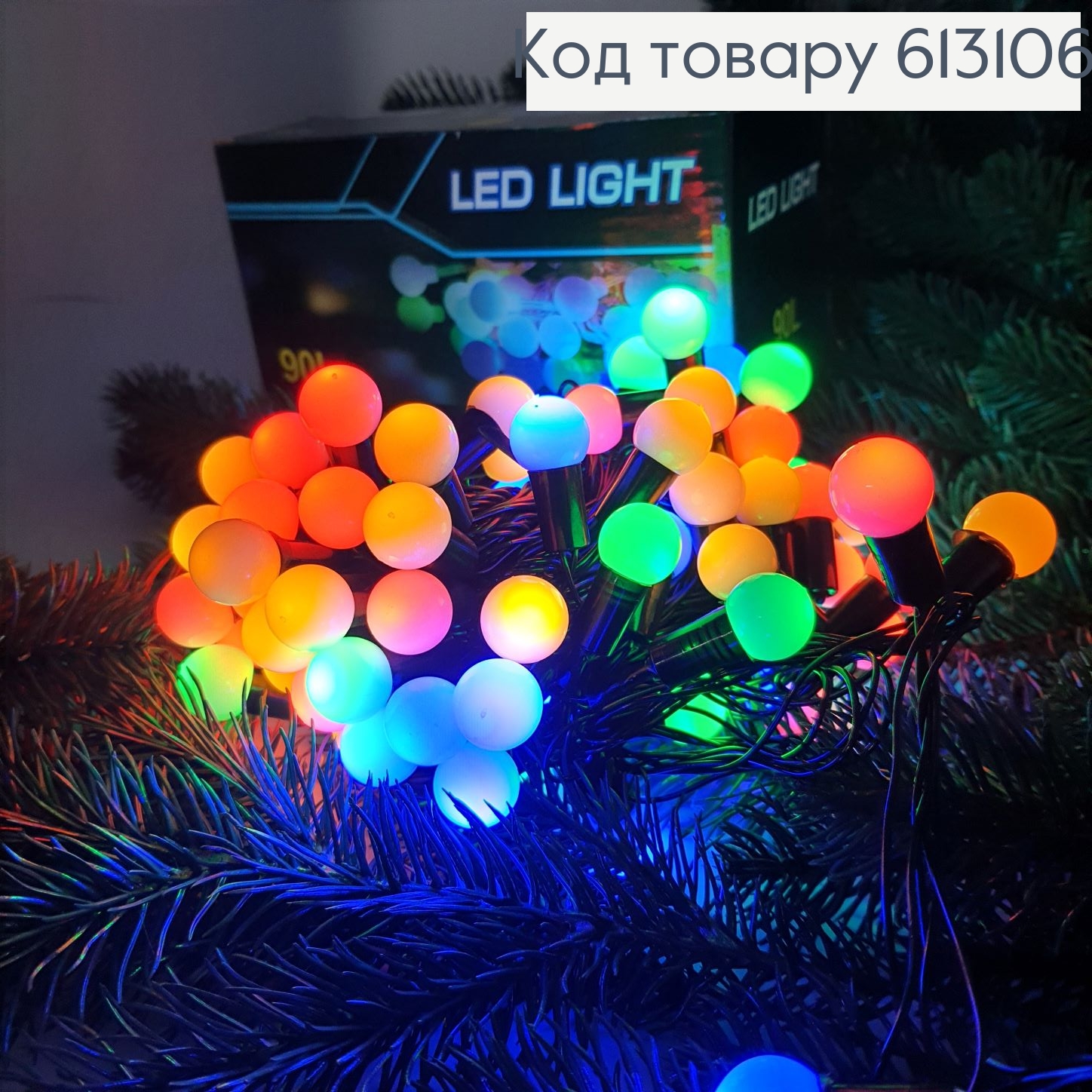 Гірлянда куля 10 мм чорний дріт 9 м 90 LED кольорова(з подовжувачем)