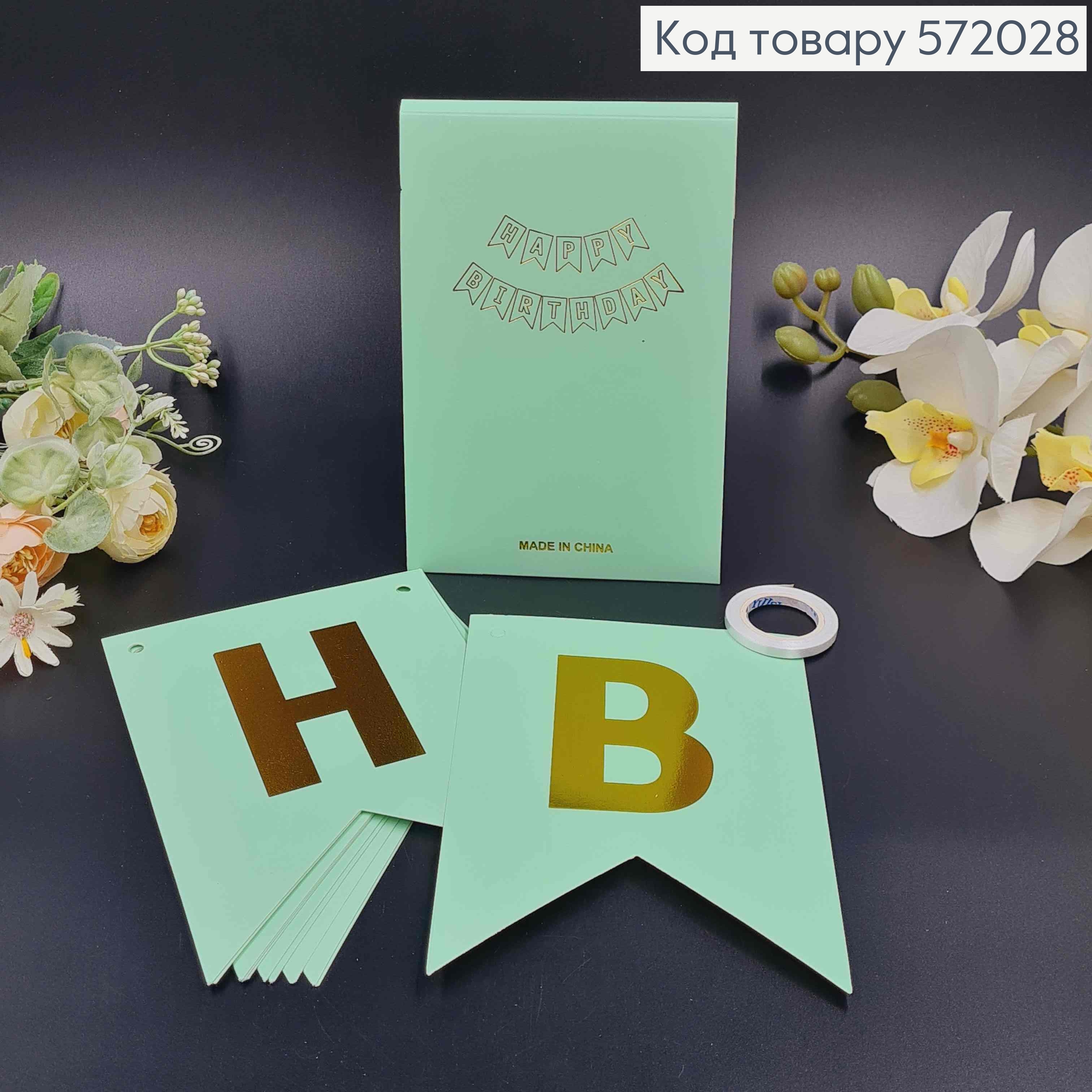 Гірлянда паперова, "Happy Birthday" Бірюзового кольору, 16,5*11,5см