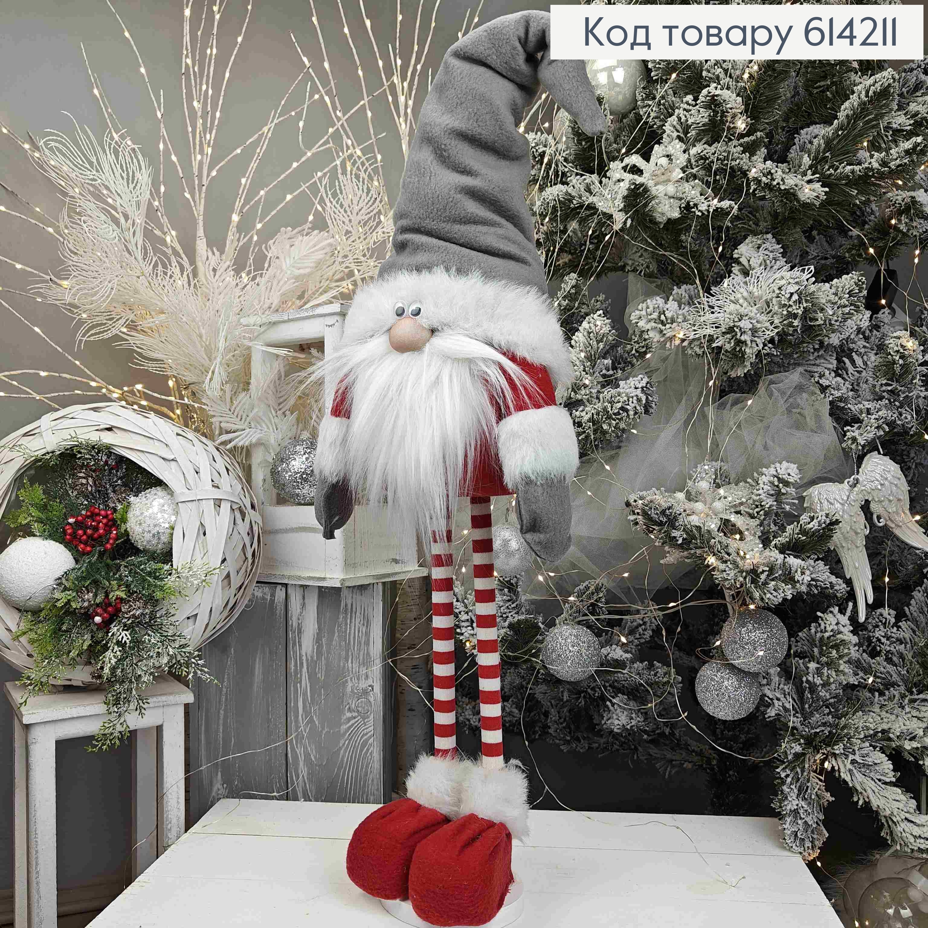 Гном "Скандинавський" в ЧЕРВОНО-СІРОМУ вбранні, 60см, ручна робота, Україна 614288 фото