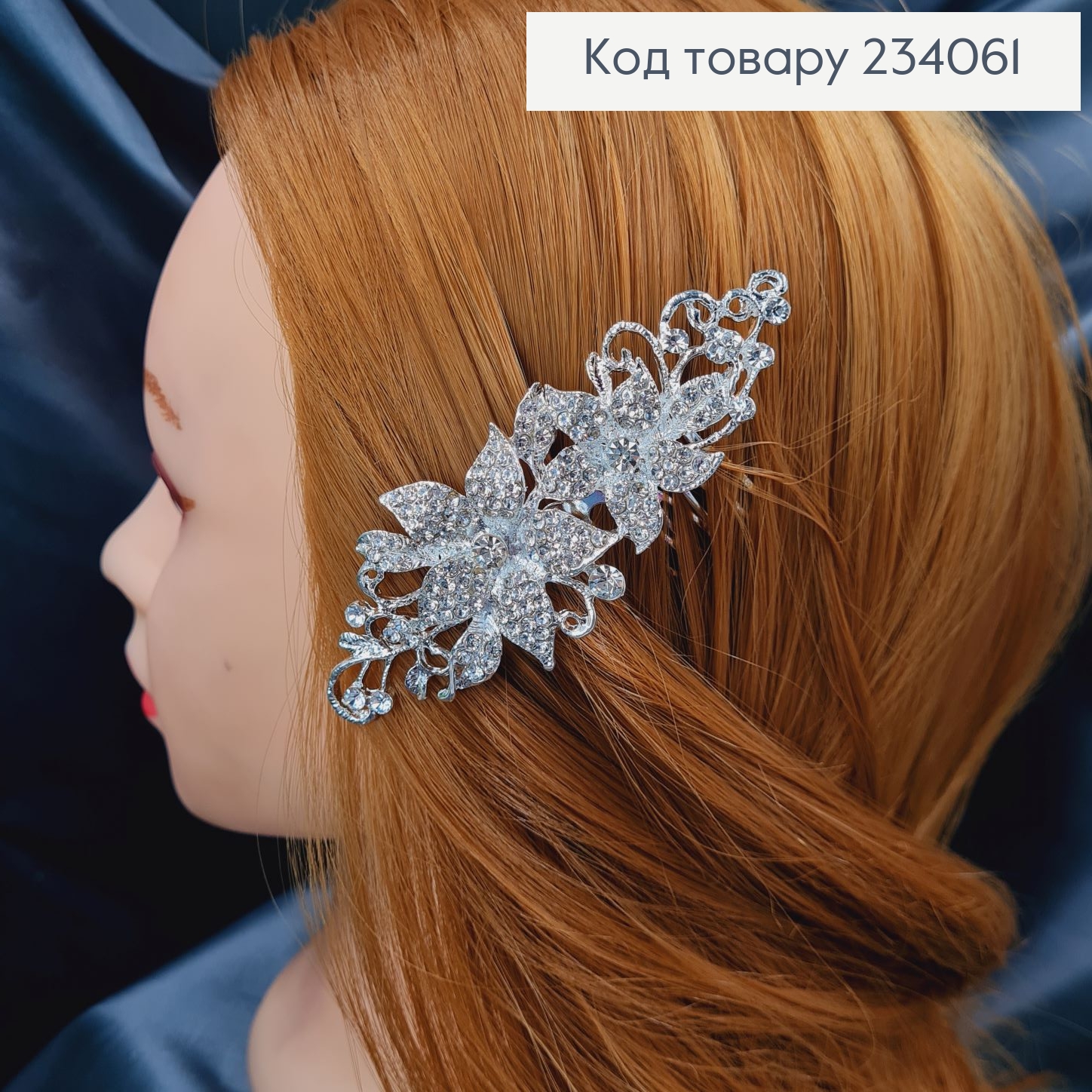 Гребінь для волосся в камінцях 10см , Квіточка срібного кольору