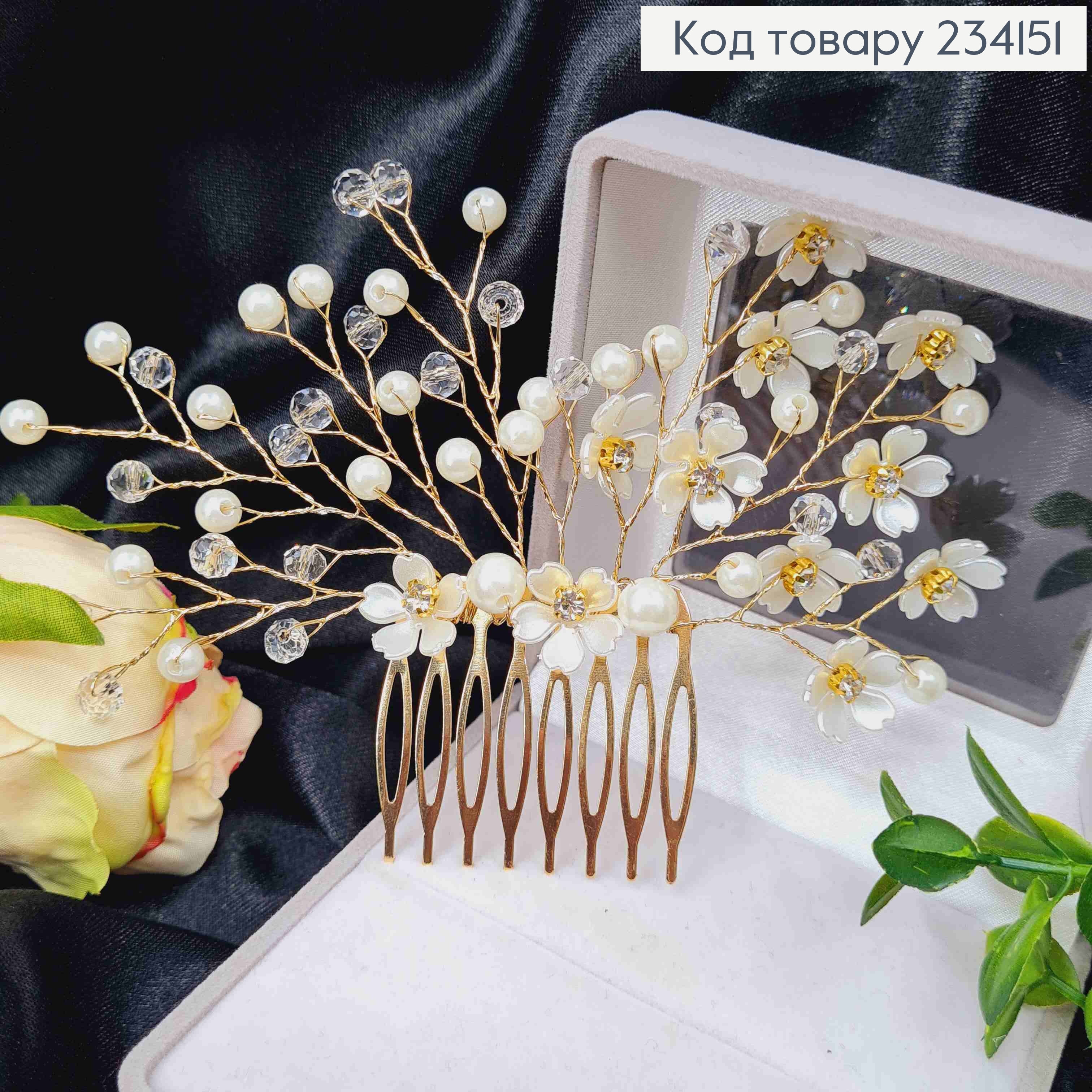 Гребінь у волосся, Ніжні квіточки з камінчиками та Перлинки, золотого кольору