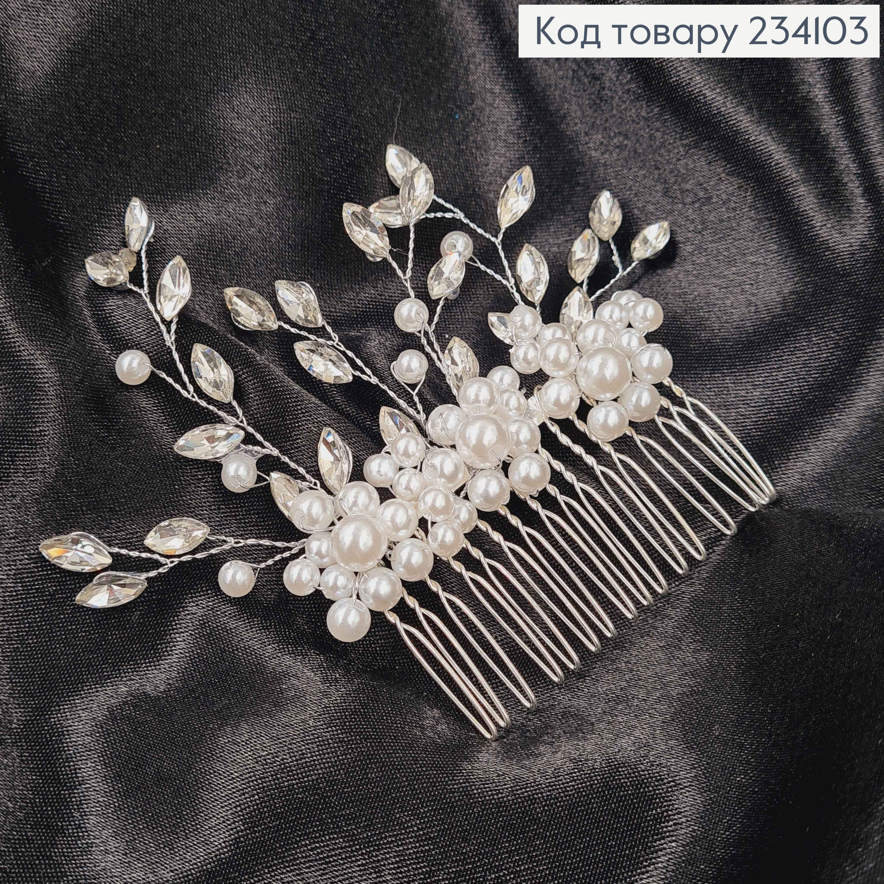 Гребінь у волосся, з Бантиком в Блискучих камінцях з Перлинкою, Срібного кольору 234182 фото