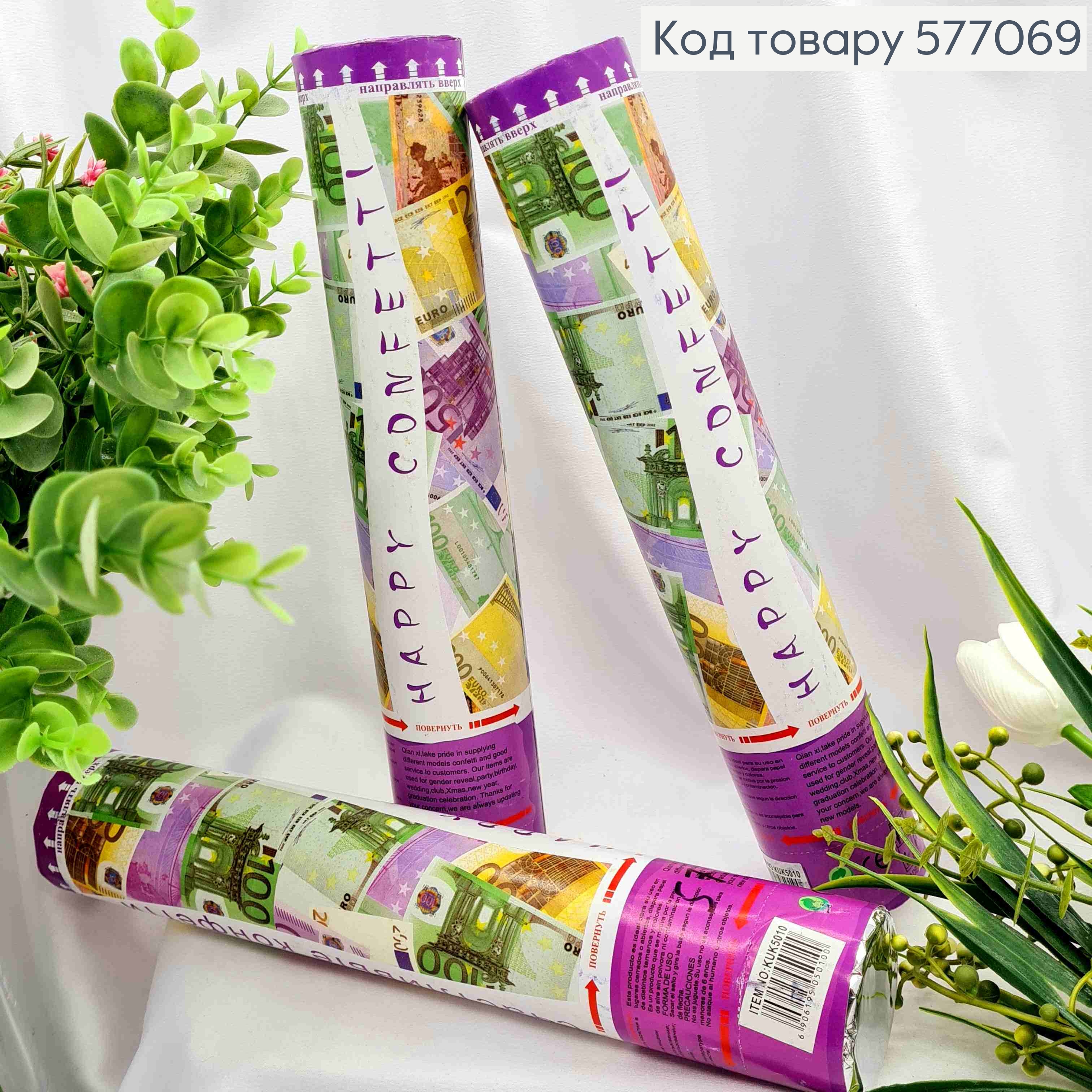 Хлопавка 28см, святкова, конфеті євро купюри