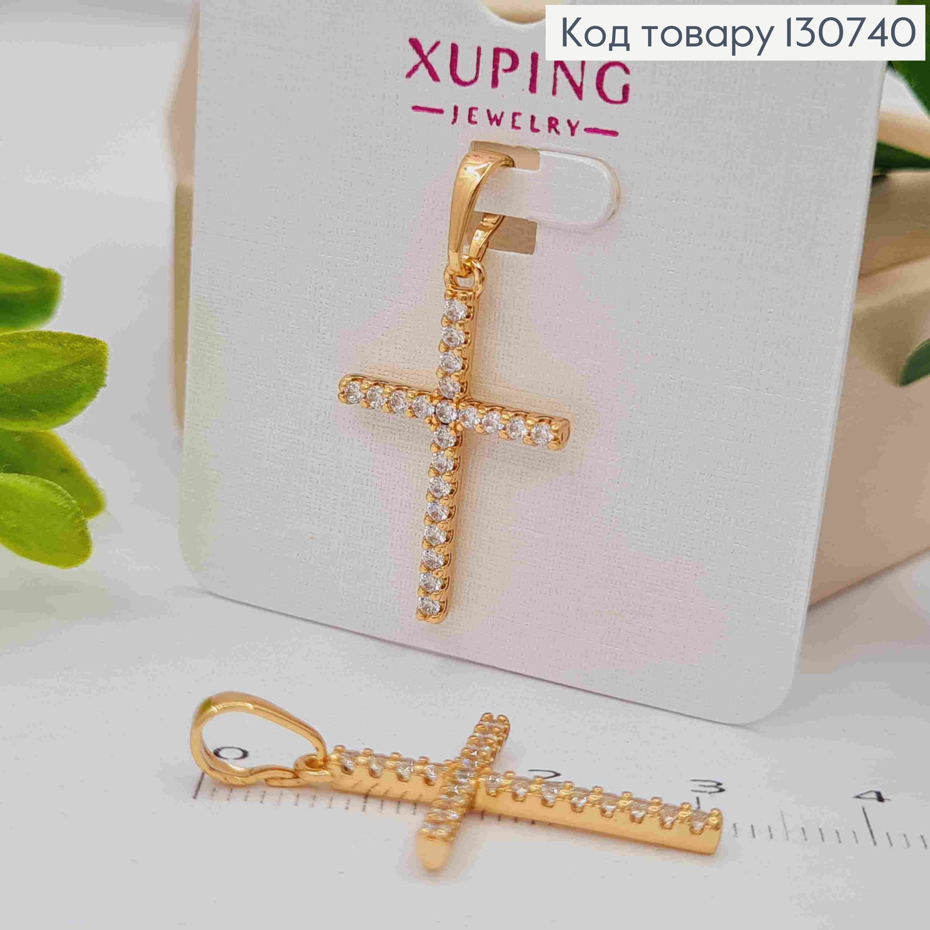 Хрестик прикрашений Блискучими камінцями, розмір 3*1,8см,  Xuping 18K 130737 фото
