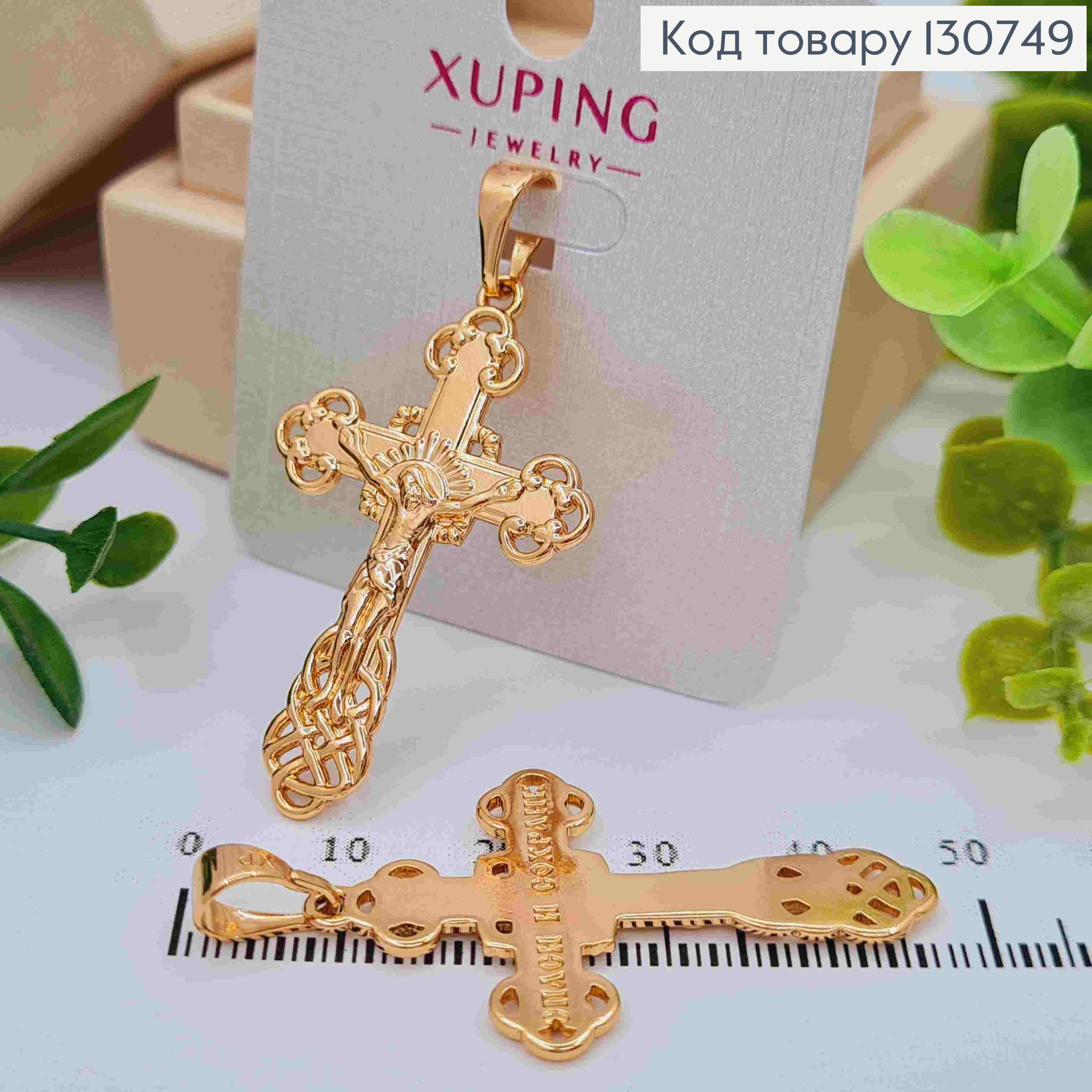 Хрестик з розп'яттям "Спаси и Сохрани", розмір 4*2,5см, Xuping 18K 130748 фото