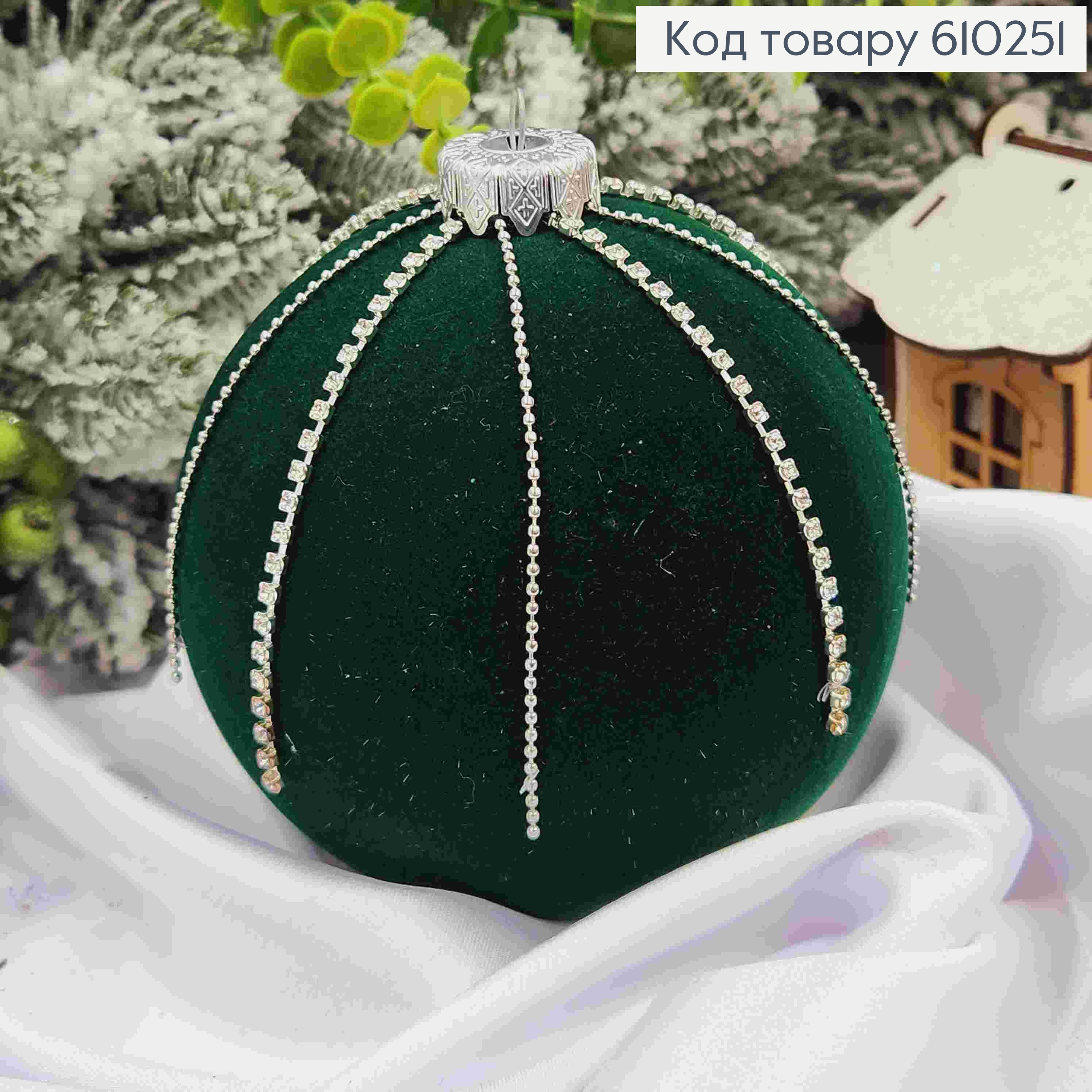 Іграшка куля 100мм "ОКСАМИТ+ЦЕПОЧКА" СМАРАГД (колір), новорічна прикраса пластикова,Україна