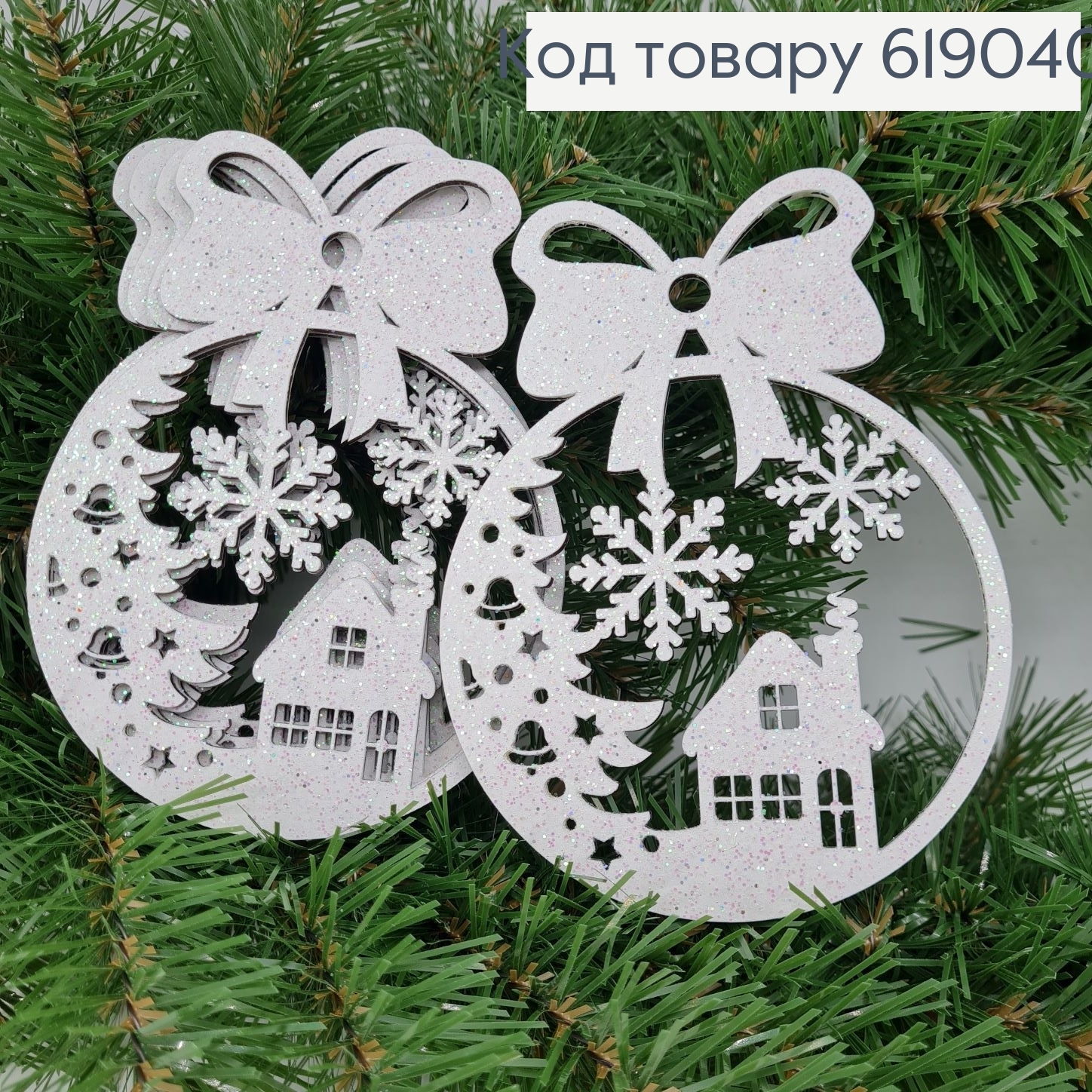 Ялинкова прикраса МЕТЕЛИК на заколці, Білого кольору+Блиск, 21*17см 620761 фото