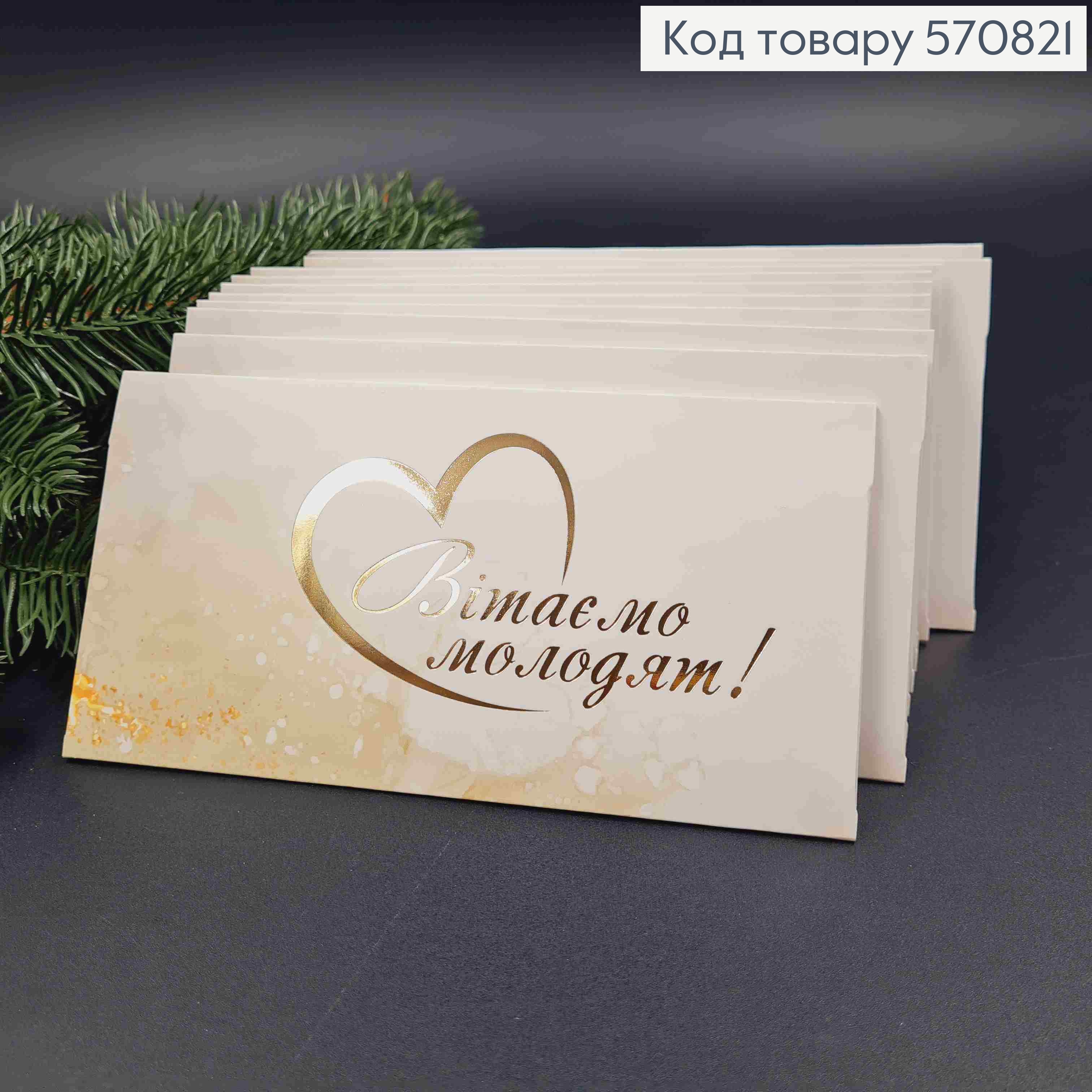 Конверт Білий з ЗОЛОТИМ тисненням "Вітаємо Молодят", 16,5*8,5см, 10шт\уп