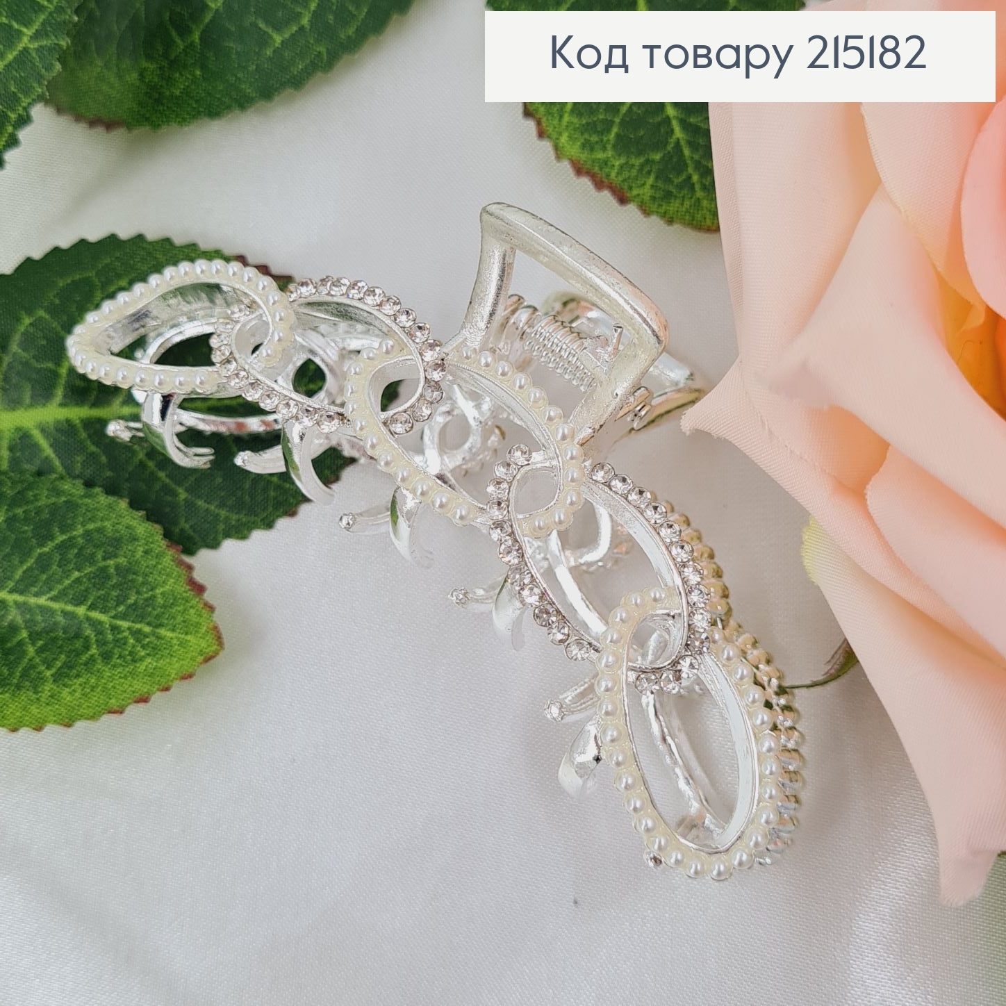 Краб метал  "Бантик з Колоском" прикрашений Блискучими камінцями, 11,5см, Срібного кольору 215773 фото