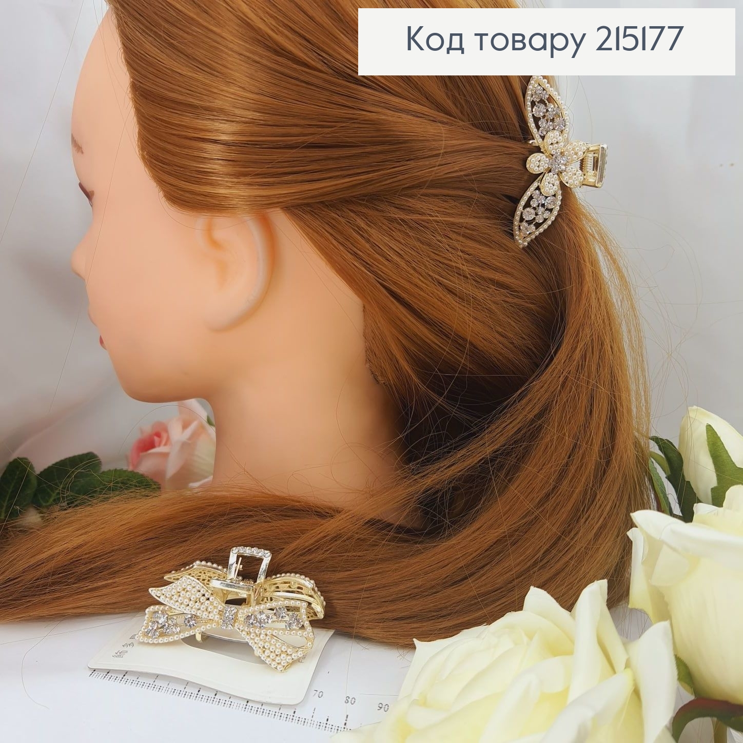 Краб метал Бантик з перлинками і камінцями, 6см, в асорт.