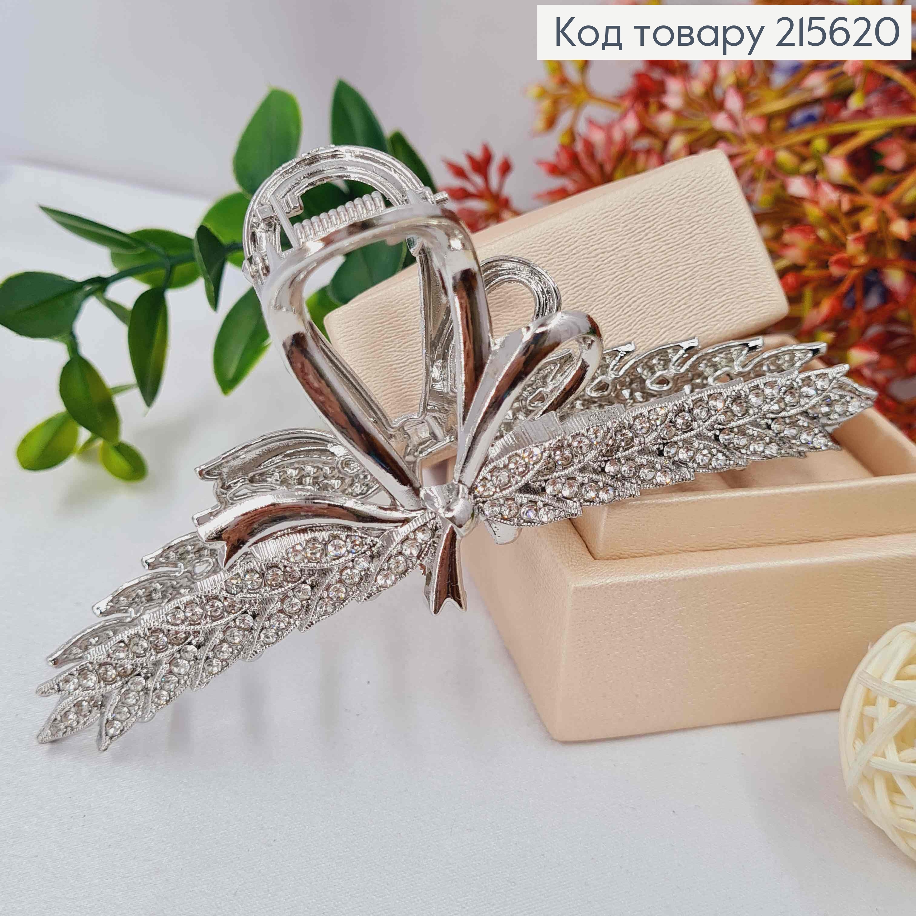 Краб метал  "Бантик з Колоском" прикрашений Блискучими камінцями, 11,5см, Срібного кольору 215773 фото