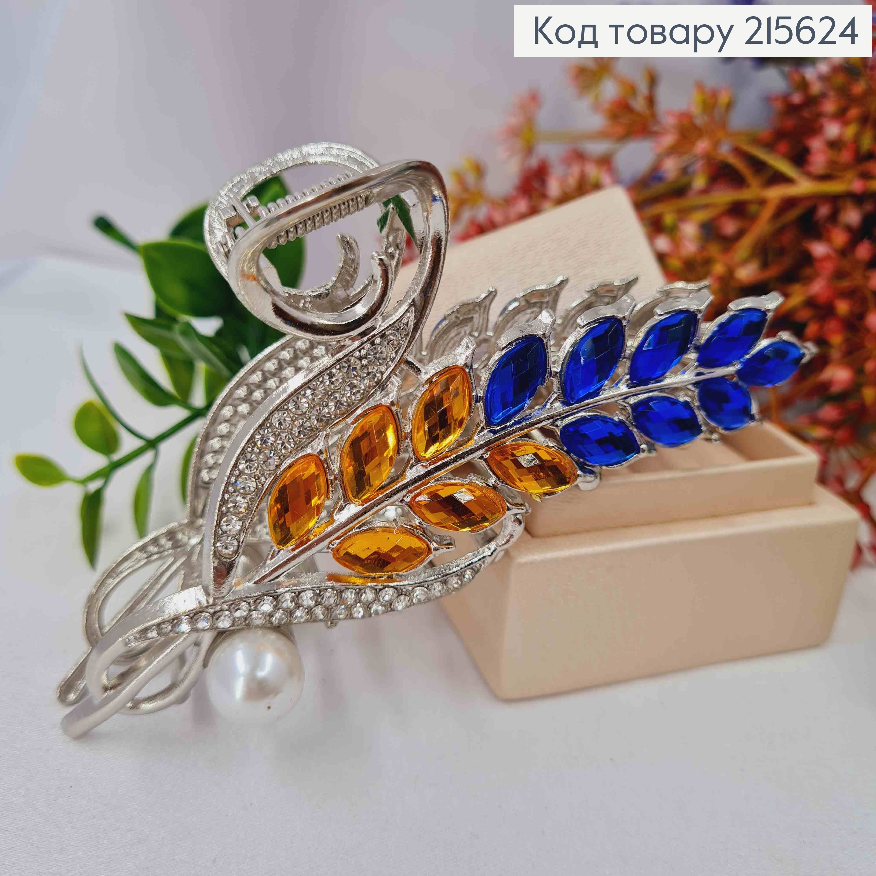 Краб МЕТАЛ "КОЛОСОК " ЖОВТО-СИНІЙ, срібного кольору з камінцями, 11см