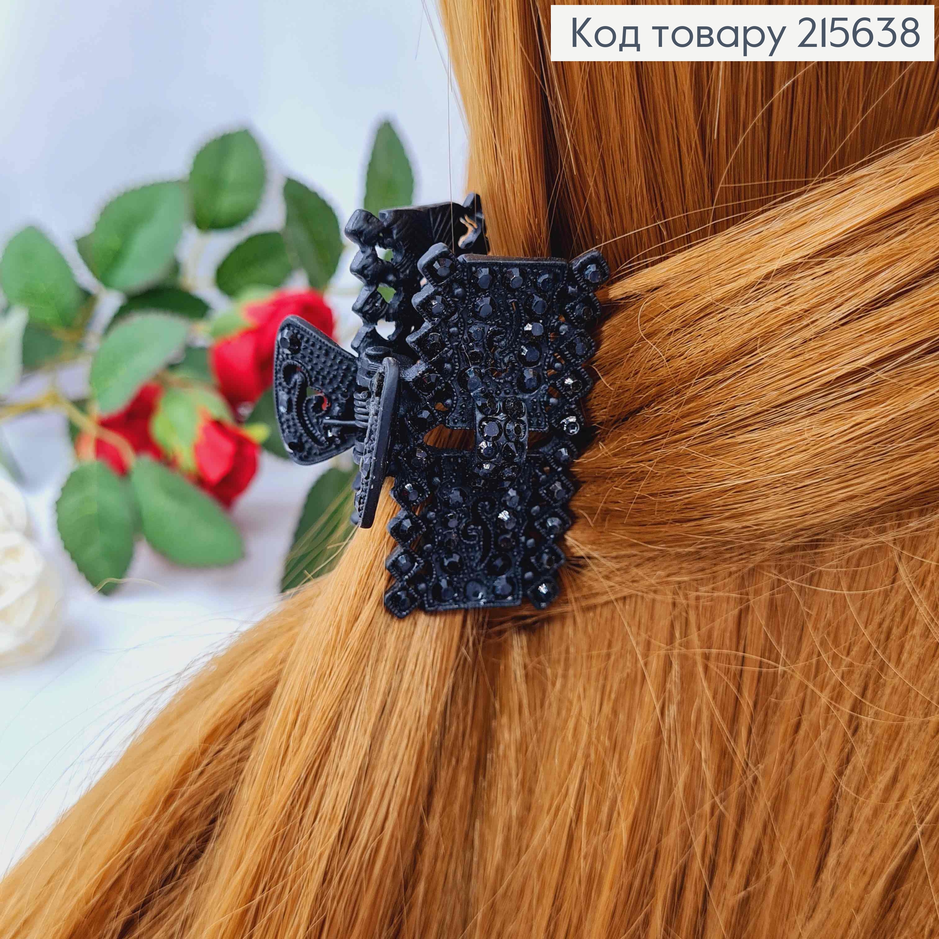 Краб метал ПРЯМОКУТНИЙ прикрашений Чорними камінцями, 5см, Чорного кольору