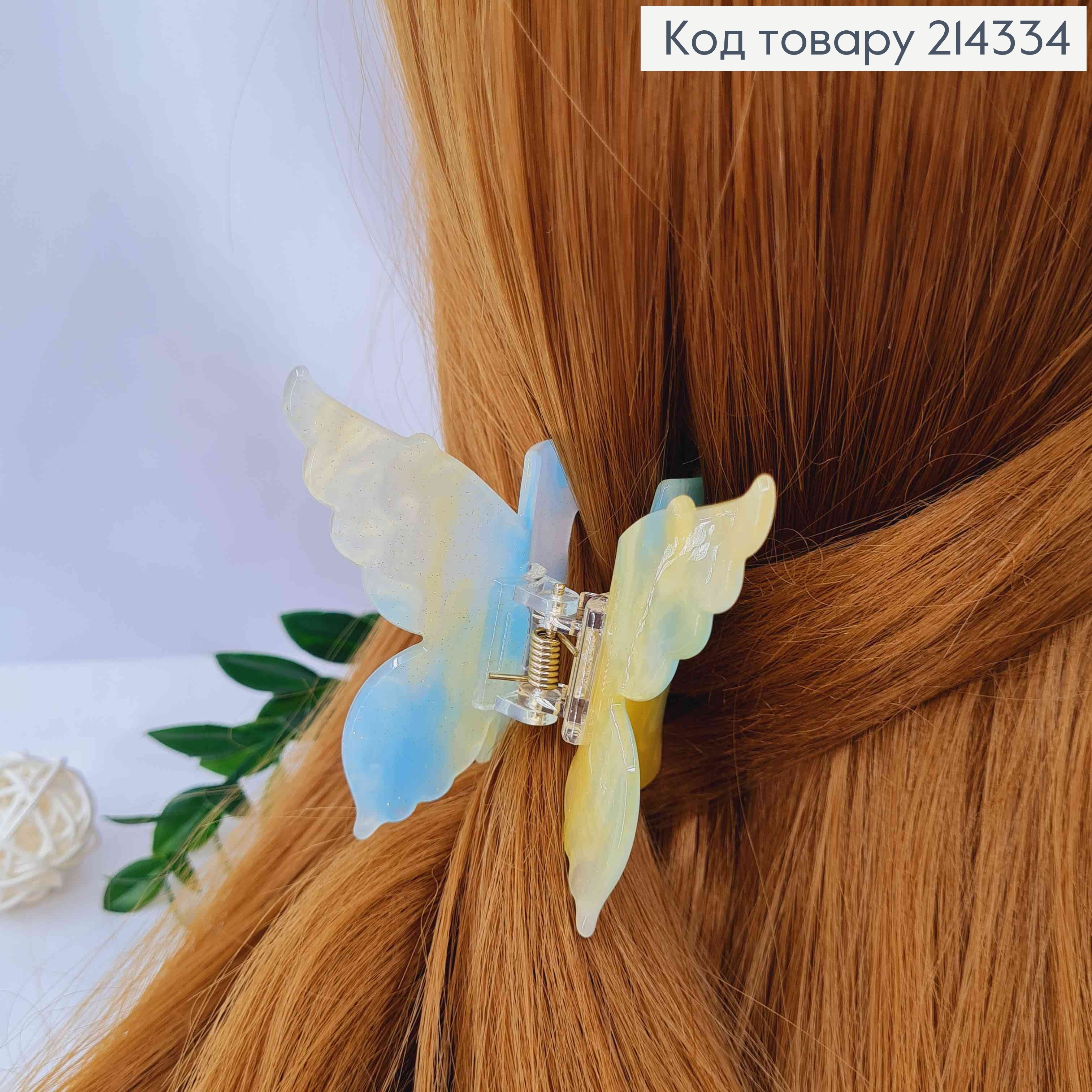 • Цей стильний крабик має форму метелика, що додає образу ніжності та елегантності. Виготовлений з якісного акрилу та прикрашений стразами і глітером.