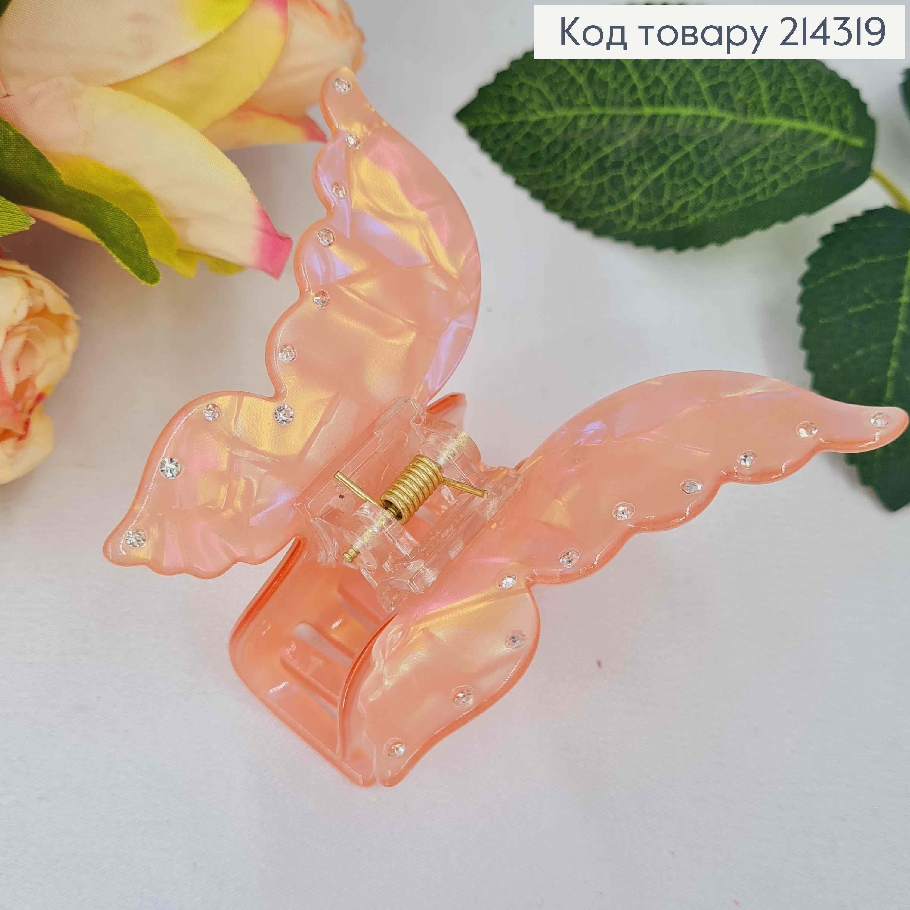 Краб пластик, МЕТЕЛИК з ажурними крилами, 7,5*8см, Перламутрово-Персикового кольору 214281 фото
