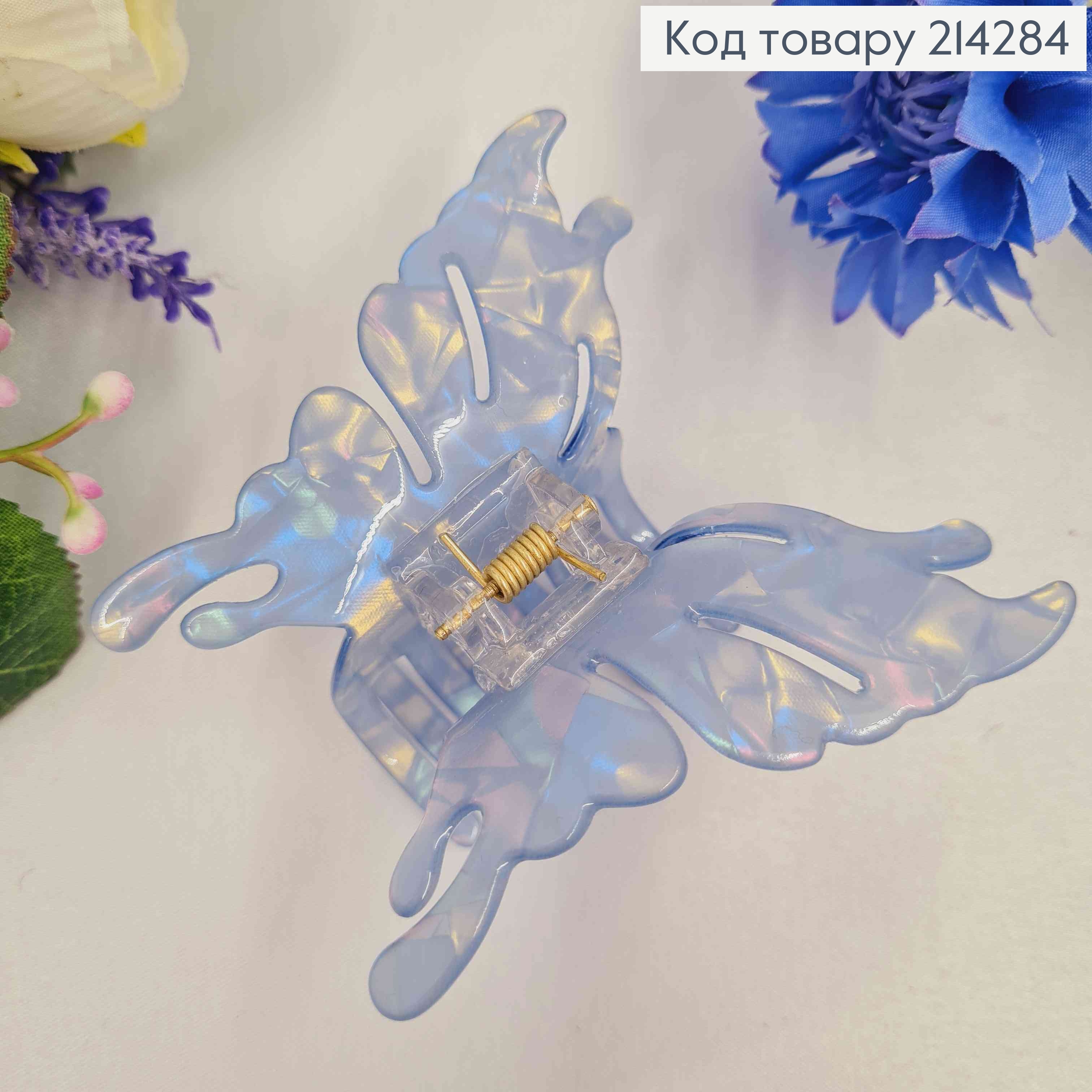 Краб пластик, МЕТЕЛИК з ажурними крилами, 7,5*8см, Перламутрово-Блакитного кольору