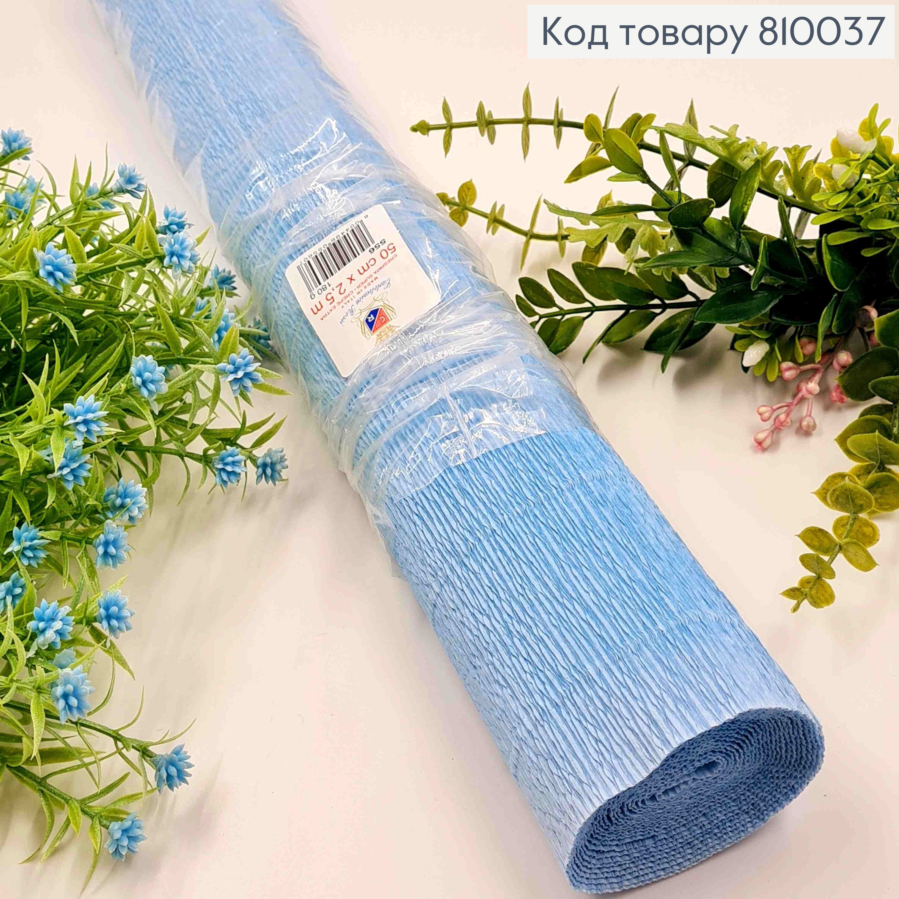 Креп-папір гофрований, БЛАКИТНИЙ (колір 556), ширина 50см, довжина 2,5м, ITALY