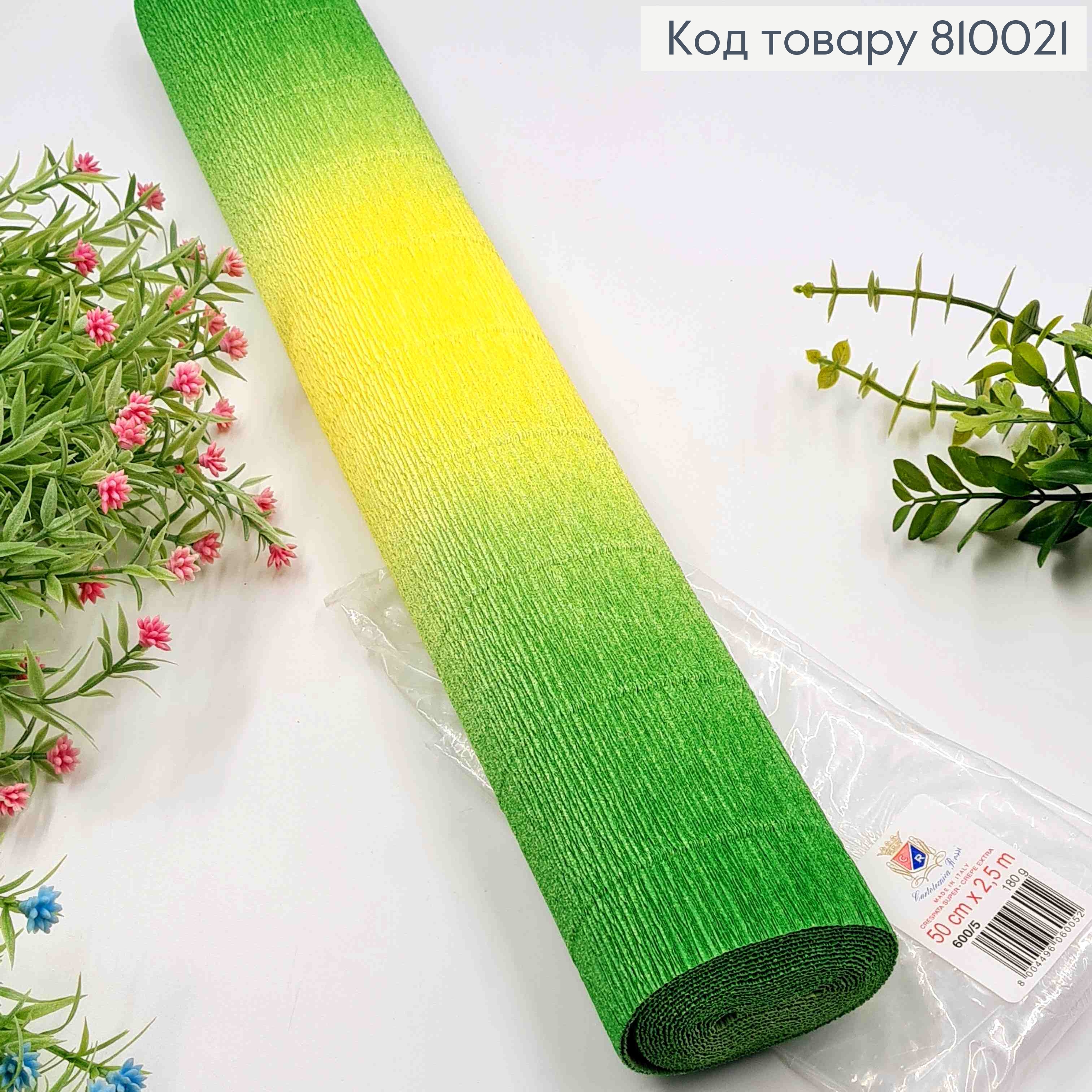Креп-папір гофрований (двоколірний), ЖОВТО-ЗЕЛЕНИЙ (колір 600/5), ширина 50см, довжина 2,5м, ITALY