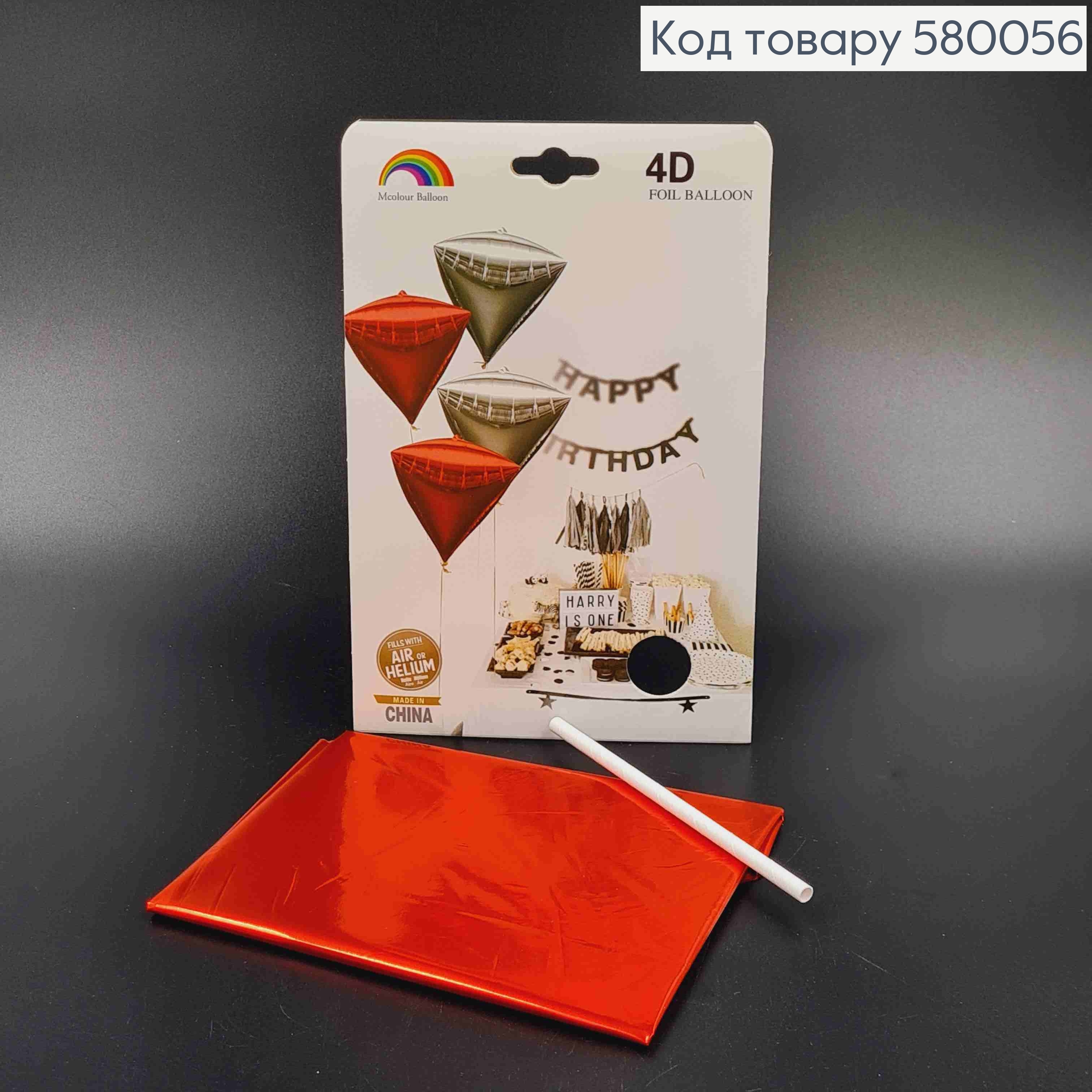 Кулька 4D, трикутної форми, ЧЕРВОНОГО кольору, 18"(45)см