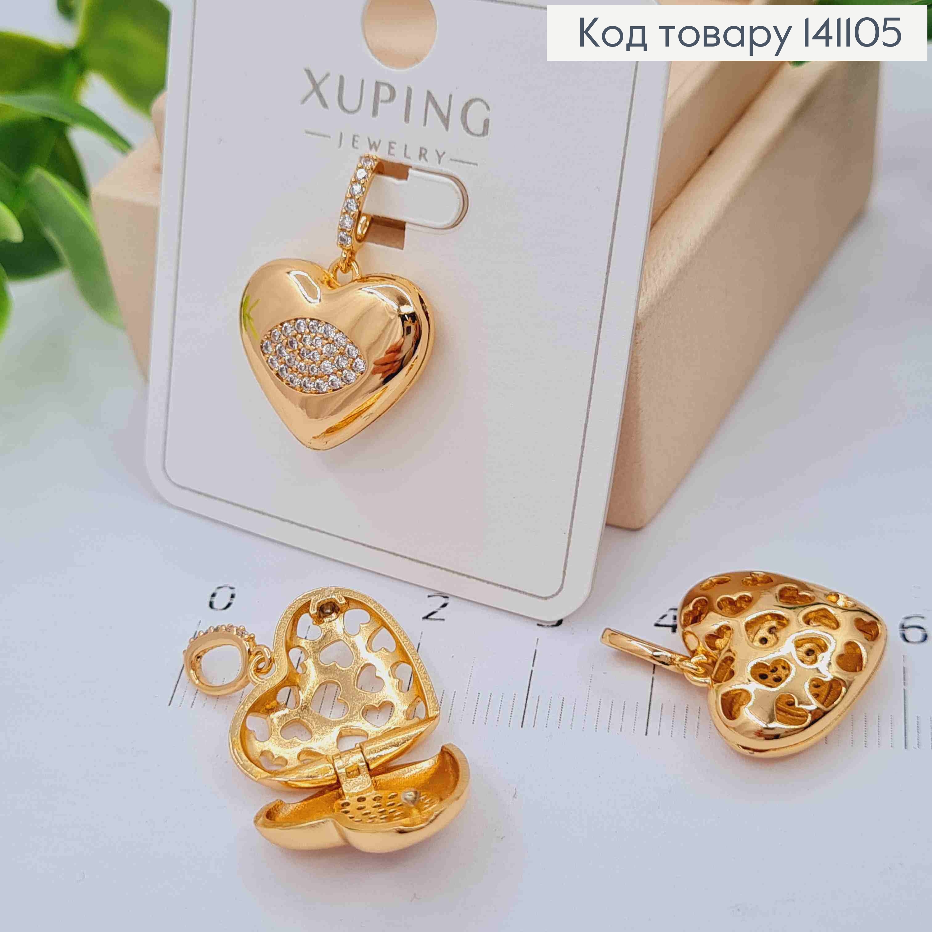 Кулон, який відкривається, "Серце" з Блискучими камінцями, 1,6см, Xuping 18К