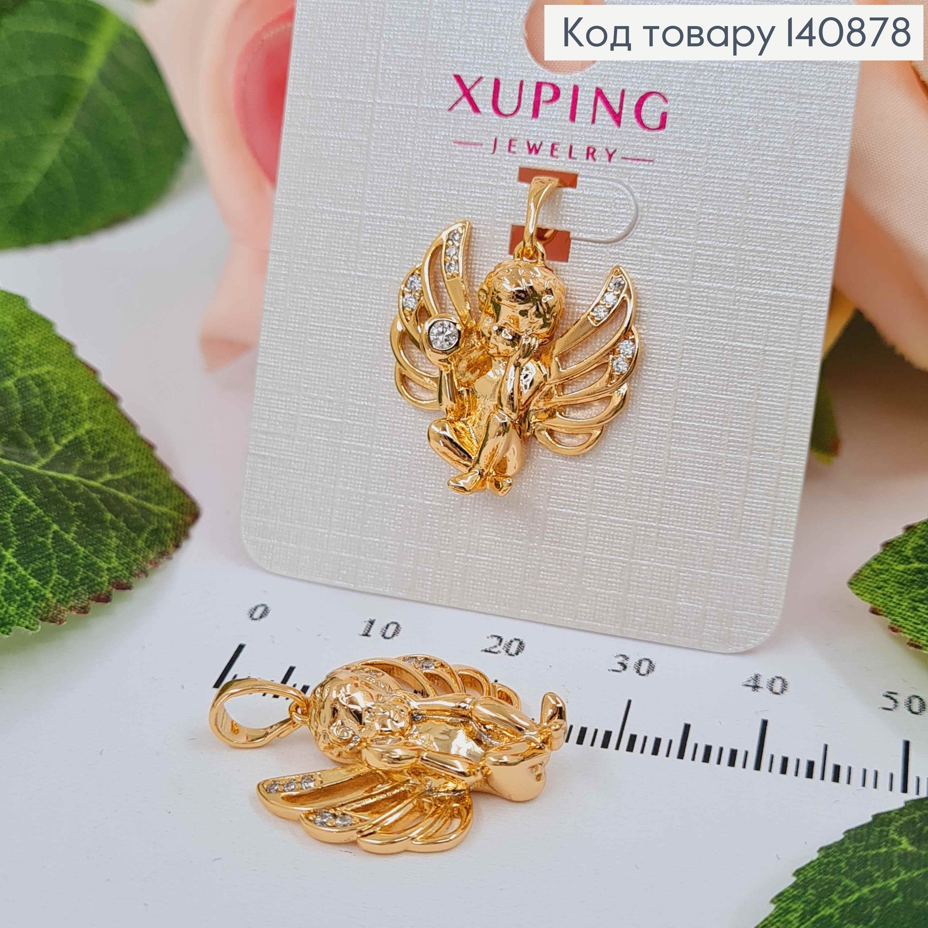 Кулон "Ангел з крилами" з камінцями, 2см, Xuping 18К
