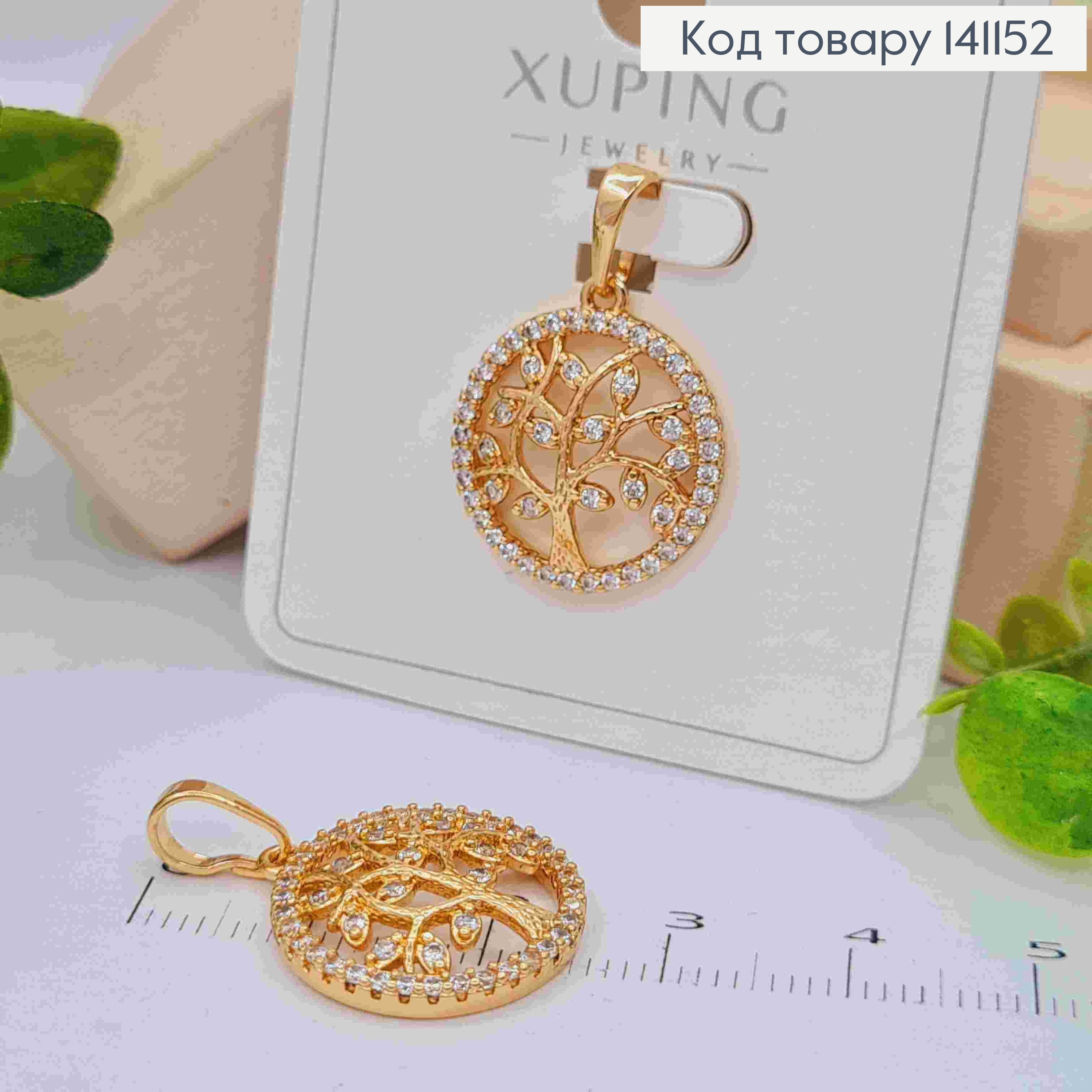 Кулон "Дерево життя" прикрашений Блискучими камінцями, розмір 1,8см, Xuping 18K